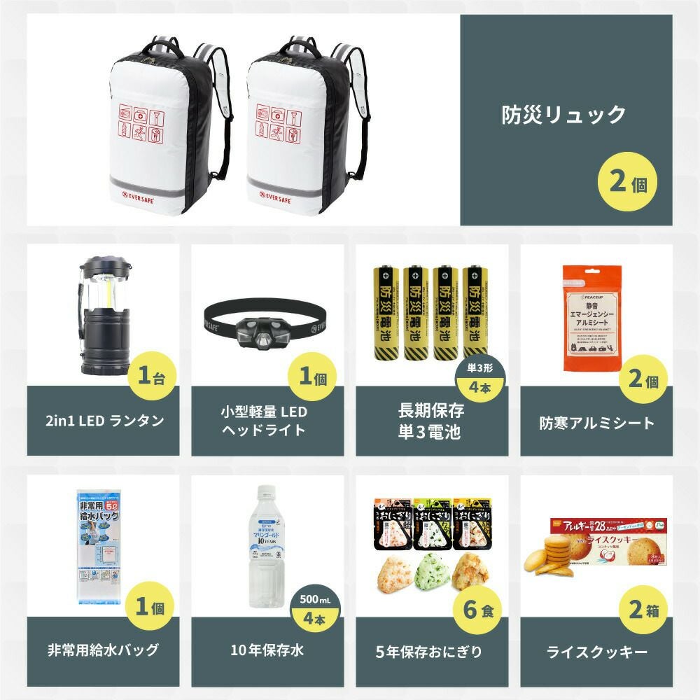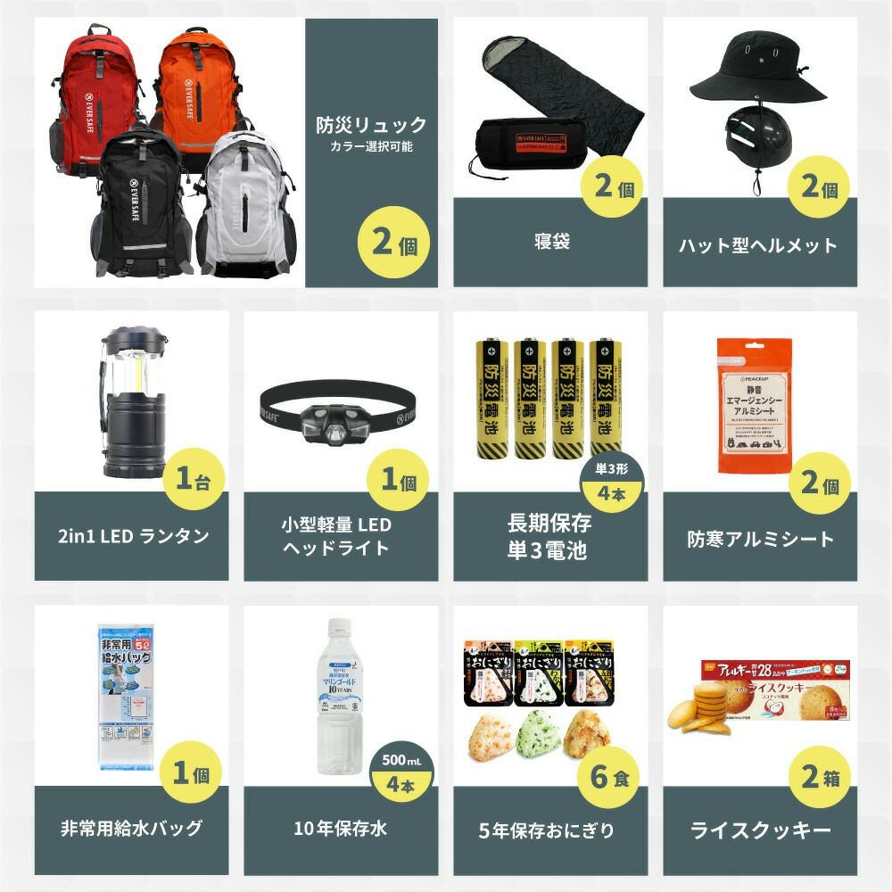 他の画像を見る ハット型ヘルメット・寝袋付 30Lの大容量 撥水加工生地 止水ファスナーを採用した機能性抜群の軽量防災バッグ 防災リュック 防災セット 2人用 EVERSAFEリュック ハット型ヘルメット付 寝袋付 防災グッズ 避難 災害対策 帰宅困難者 地震 長期保存 ライト 懐中電灯 非常食 警戒レベル3 L3ESHTNB02 公式サイト特別価格 ¥ 21,755 税込 詳細を見る お気に入りに登録する