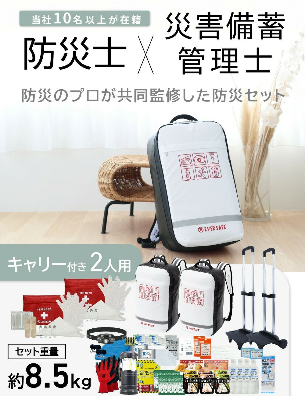 他の画像を見る 高さ調節が可能なキャリーカート付 撥水・難燃の高耐久素材の防災リュック シンプルでスタイリッシュなデザインでありながら機能性抜群◎ 底まで開く防災リュック 防災セット 2人用 キャリーカート付 防災グッズ 多機能リュック 大容量 おしゃれ 折りたたみ式 防災用品 女性 高齢者 地震 災害対策 帰宅困難者 ライト 非常食 警戒レベル3 EVERSAFE L3TPCA02 公式サイト特別価格 ¥ 20,900 税込 詳細を見る お気に入りに登録する