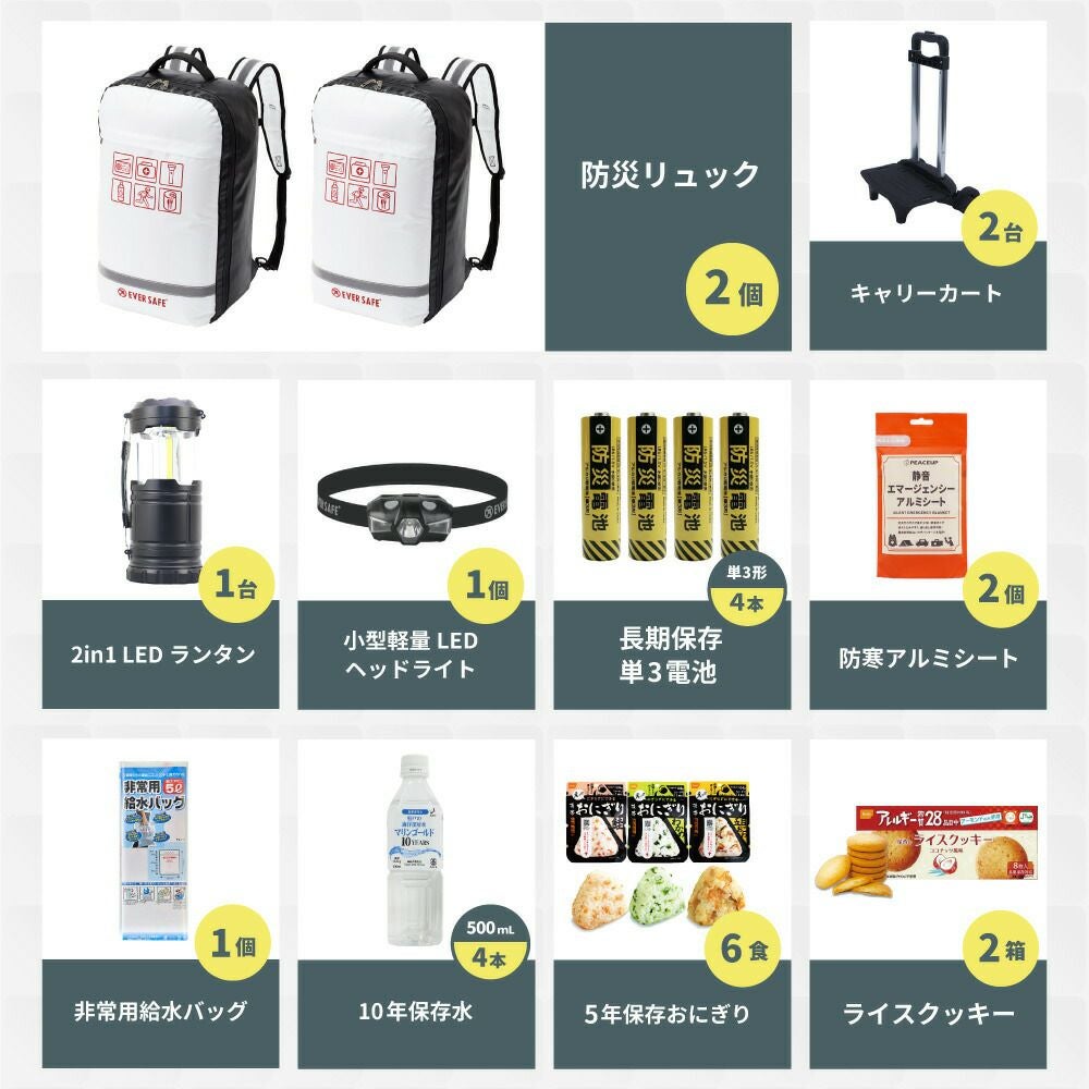 他の画像を見る 必要な中身が揃ったおすすめの防災セット 手持ちのリュックに詰めるだけ 防災士監修 防災セット 中身だけ 2人用 非常用持ち出し袋 防災ラジオ 非常食 保存水 モバイルバッテリー 簡易トイレ 救急セット 衛生用品 避難 家族 おすすめ 中身 女性 男性 二人用 警戒レベル4 L4NK02 公式サイト特別価格 ¥ 18,002 税込 詳細を見る お気に入りに登録する