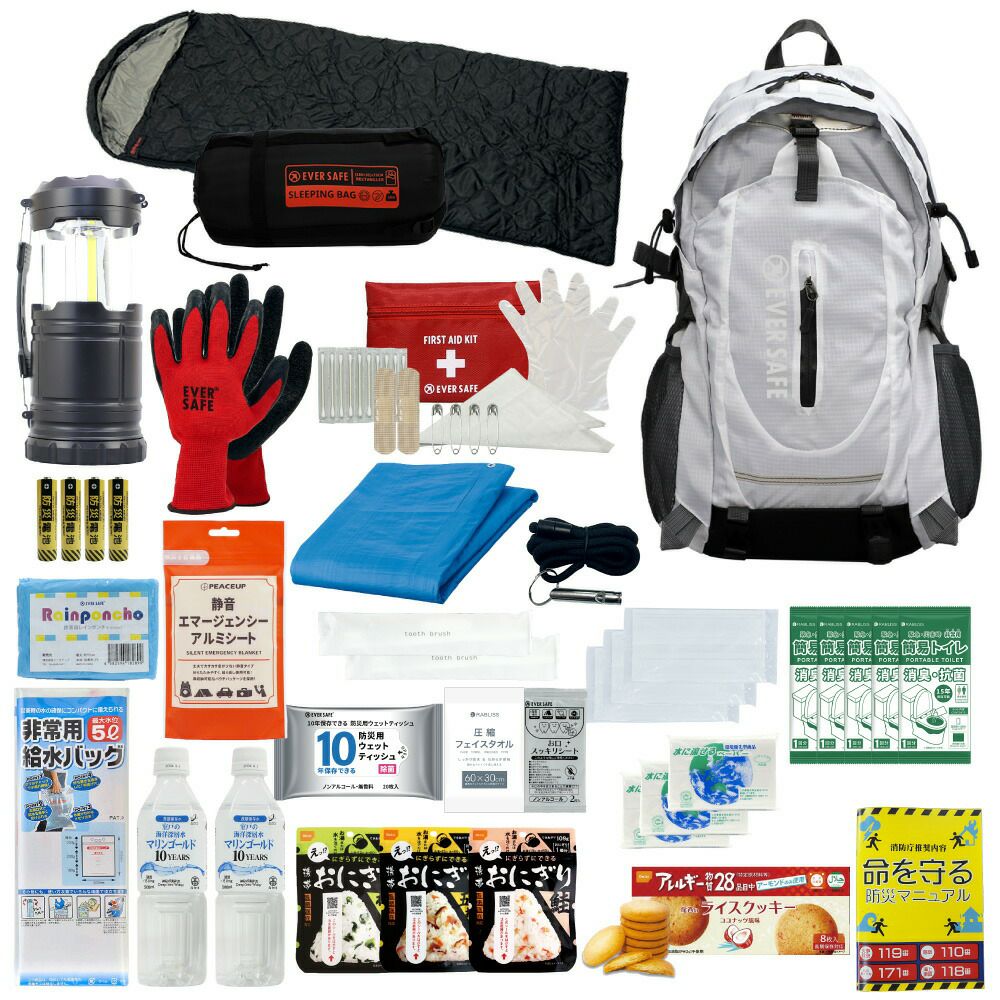 他の画像を見る コンパクトに収まる寝袋付き 30Lの大容量 撥水加工生地 止水ファスナーを採用した機能性抜群の軽量防災バッグ 防災リュック 防災セット 1人用 EVERSAFEリュック 寝袋付き 機能性抜群 超軽量 大容量 防災グッズ 避難 災害対策 帰宅困難者 地震 長期保存 ライト 懐中電灯 非常食 警戒レベル3 L3ESNB01 公式サイト特別価格 ¥ 11,210 税込 詳細を見る お気に入りに登録する