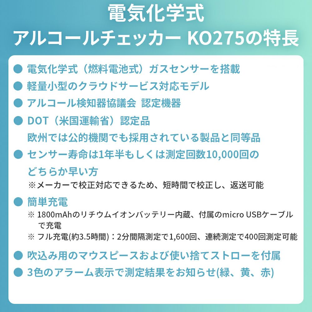 他の画像を見る スマホアプリ連携で記録した測定データをPCで一元管理 アルコールチェッカー 検知器 電気化学式 アルコール検知器協議会認定 KO275 公式サイト販売価格 ¥ 28,309 税込 詳細を見る お気に入りに登録する