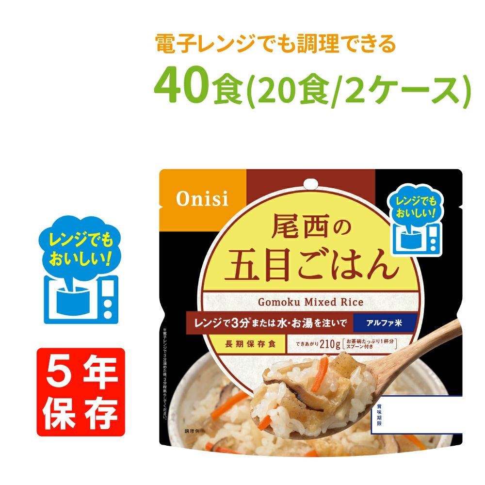 他の画像を見る レンジ調理可能!お湯か水を注ぐだけで炊きたてご飯のおいしさ 非常食 尾西食品 尾西のレンジ+(プラス)五目ごはん 40食(20食/箱x2) 5年保存 公式サイト特別価格 ¥ 15,390 税込 詳細を見る お気に入りに登録する