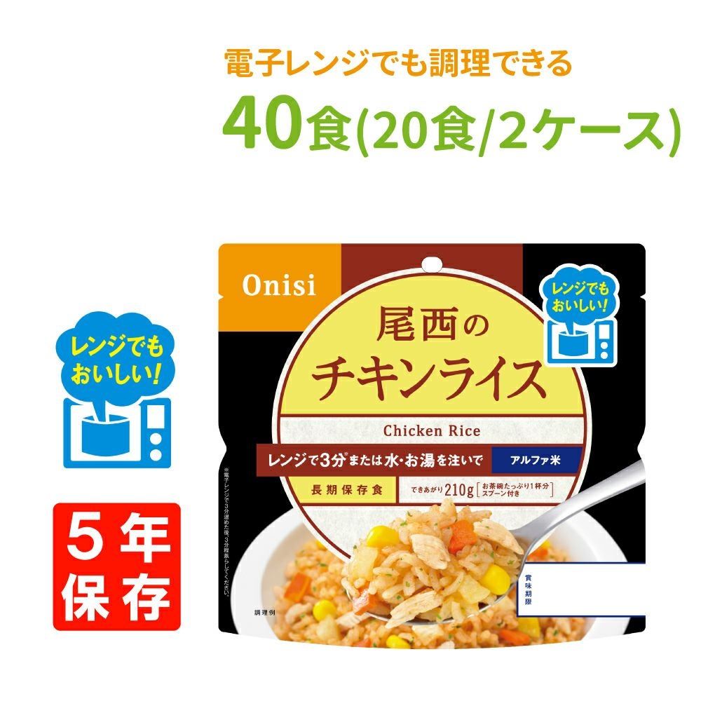 他の画像を見る レンジ調理可能!お湯か水を注ぐだけで炊きたてご飯のおいしさ 非常食 尾西食品 尾西のレンジ+(プラス)チキンライス 40食(20食/箱x2) 5年保存 公式サイト特別価格 ¥ 15,390 税込 詳細を見る お気に入りに登録する