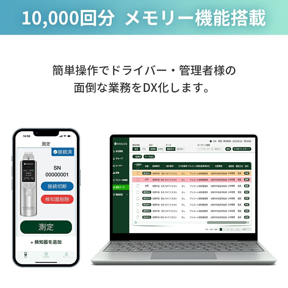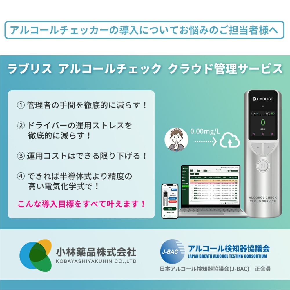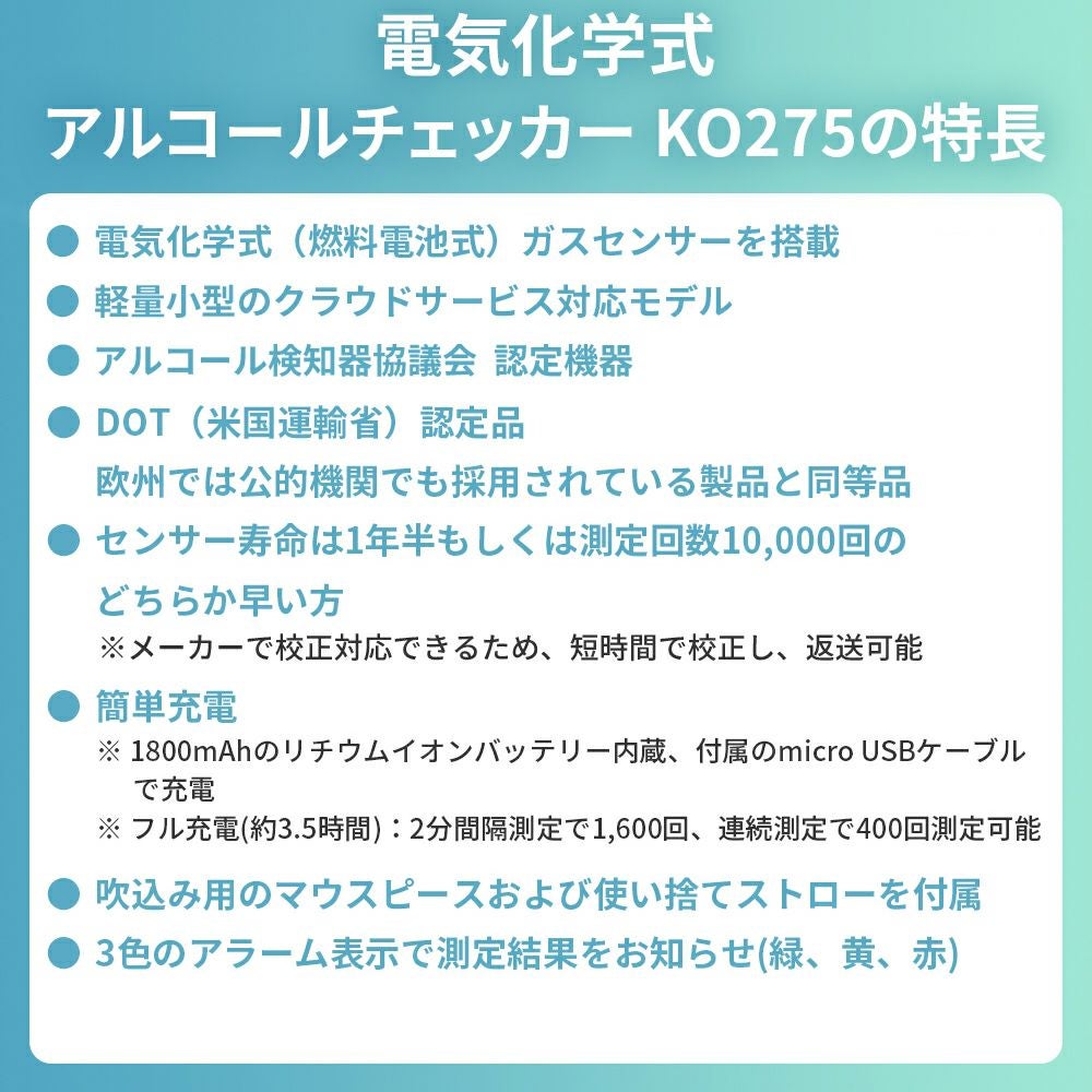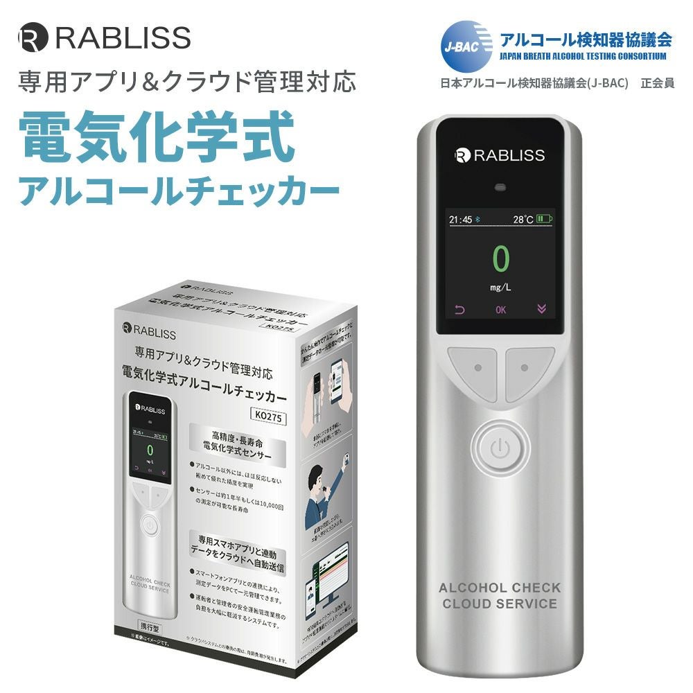 他の画像を見る スマホアプリ連携で記録した測定データをPCで一元管理 アルコールチェッカー 検知器 電気化学式 アルコール検知器協議会認定 KO275 公式サイト特別価格 ¥ 28,309 税込 詳細を見る お気に入りに登録する