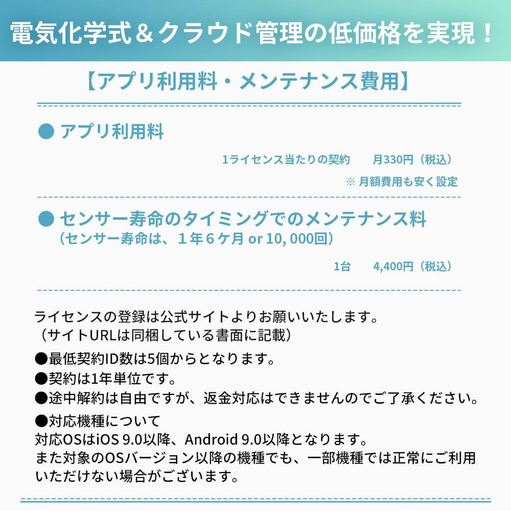 他の画像を見る スマホアプリ連携で記録した測定データをPCで一元管理 アルコールチェッカー 検知器 電気化学式 アルコール検知器協議会認定 KO275 5個セット 公式サイト特別価格 ¥ 135,327 税込 詳細を見る お気に入りに登録する