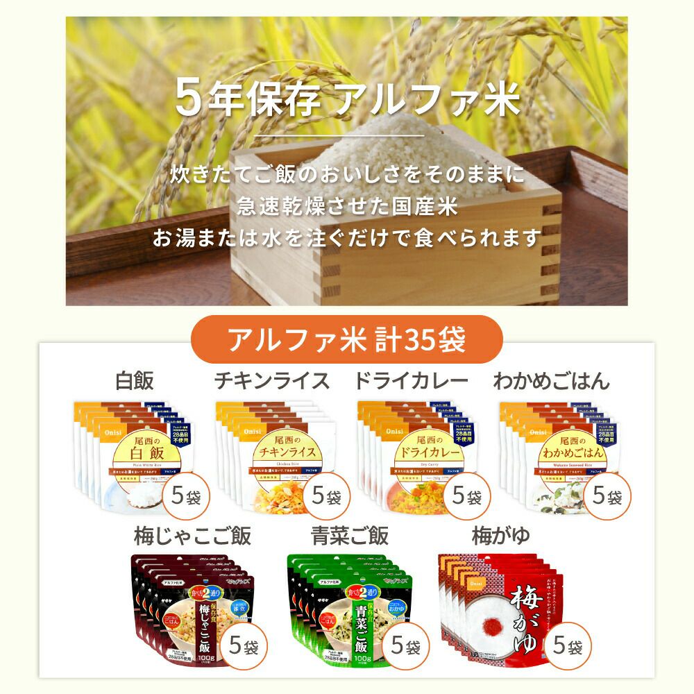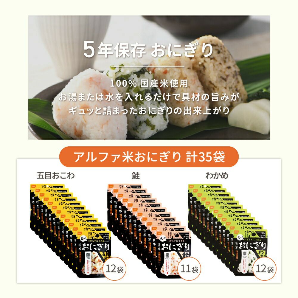 他の画像を見る 家族5人分の5年非常食が7日間分!箱入りで団体様用備蓄にも便利。防災専門店の長期保存食セット 非常食セット 5人用/7日分 105食 5年保存 アルファ米 パンの缶詰 5人分 7日間 生きのびる 防災食 保存食 防災 食品 尾西 携帯おにぎり おむすび ご飯 お米 保存食セット 防災グッズ 災害備蓄用パン 生命のパン 公式サイト特別価格 ¥ 33,724 税込 詳細を見る お気に入りに登録する