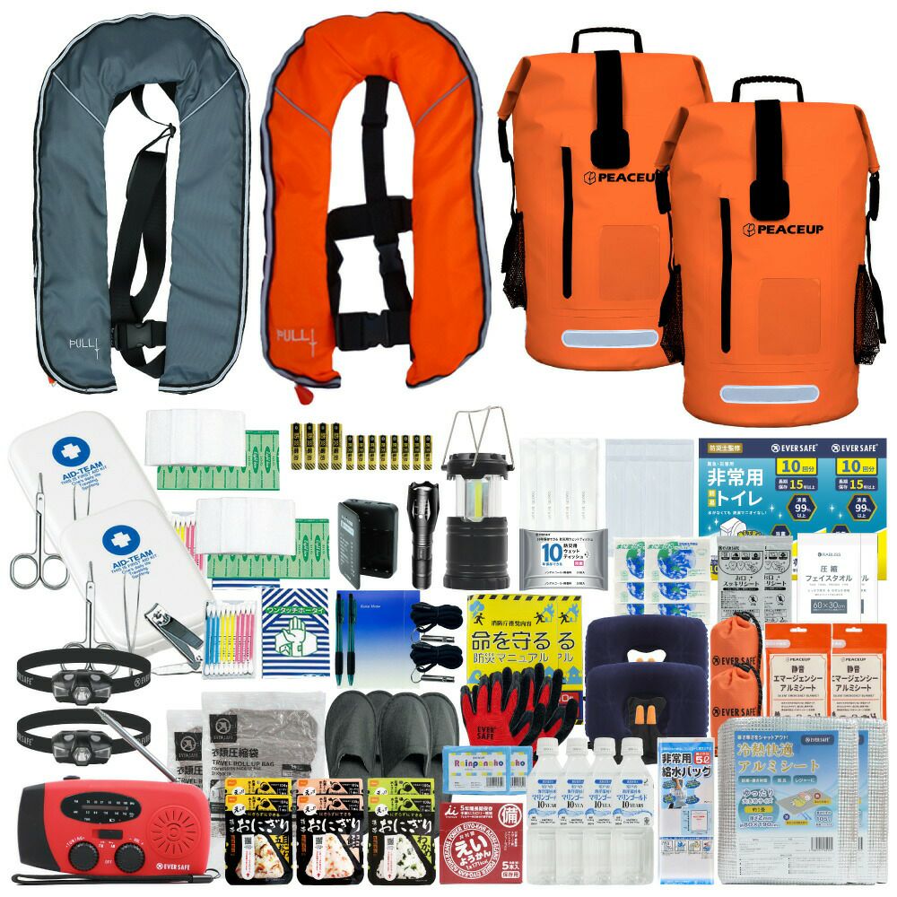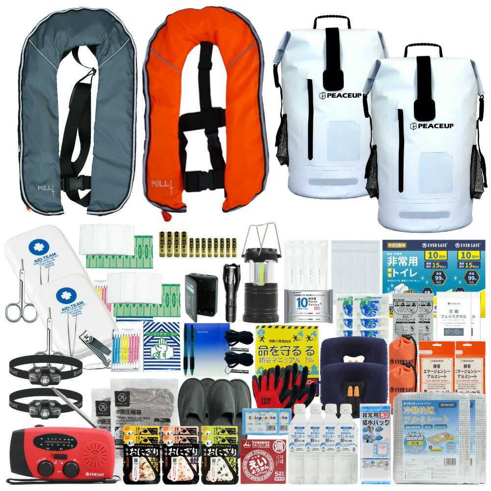 他の画像を見る 水に強い防水リュック ライフジャケット付き 水害に備える防災セット 選べる3カラー 防災士監修 防災セット 2人用 ドライバッグ 防水リュック 手動膨張式 ライフジャケット ヘッドライト 水害対策 防災リュック 非常食 保存水 防災ラジオ 簡易トイレ 懐中電灯 警戒レベル4 水難 アウトドア L4DRLF02 公式サイト特別価格 ¥ 37,809 税込 詳細を見る お気に入りに登録する