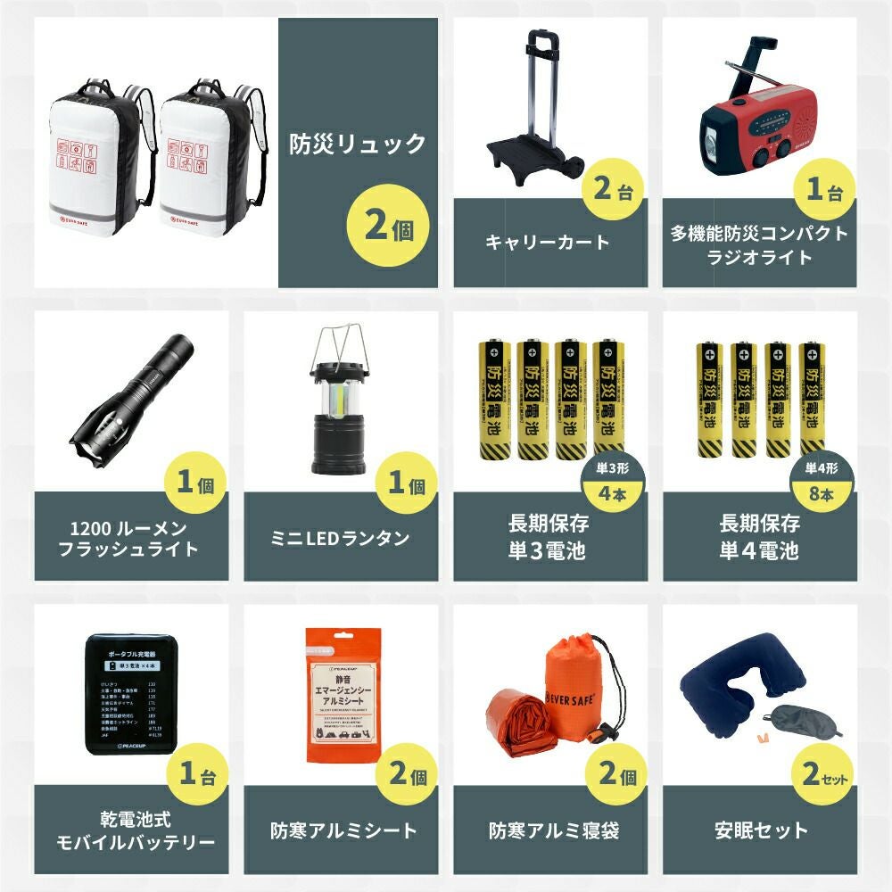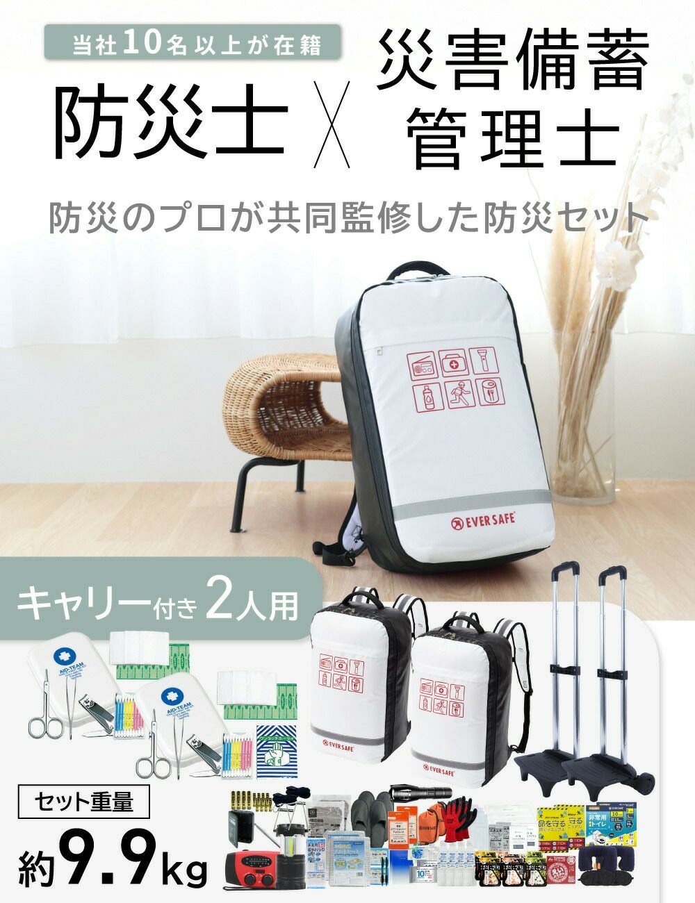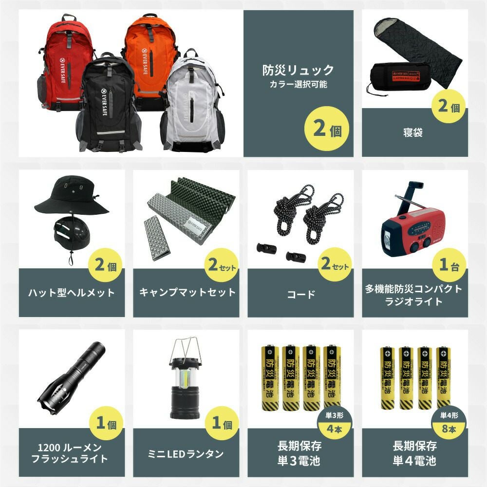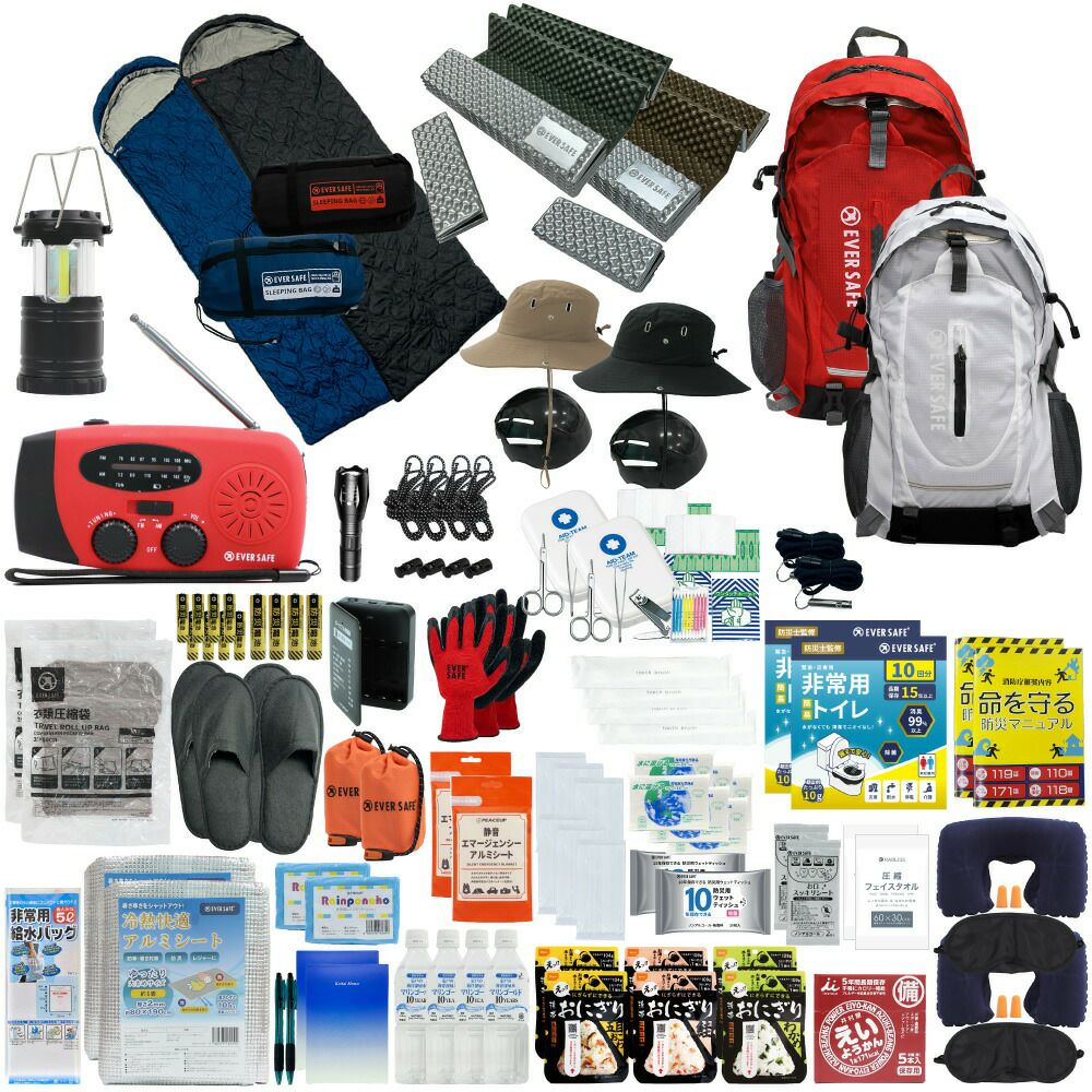 他の画像を見る ハット型ヘルメット・寝袋・マット付きの防災セット 機能性抜群の撥水加工済み防災リュック 防災士監修 防災セット 2人用 EVERSAFEリュック 寝袋 キャンプマット ハット型ヘルメット 防災リュック 撥水加工 非常食 保存水 防災ラジオ 簡易トイレ 救急セット 懐中電灯 衛生用品 警戒レベル4 超軽量 L4ESHTNBMT02 公式サイト特別価格 ¥ 37,809 税込 詳細を見る お気に入りに登録する