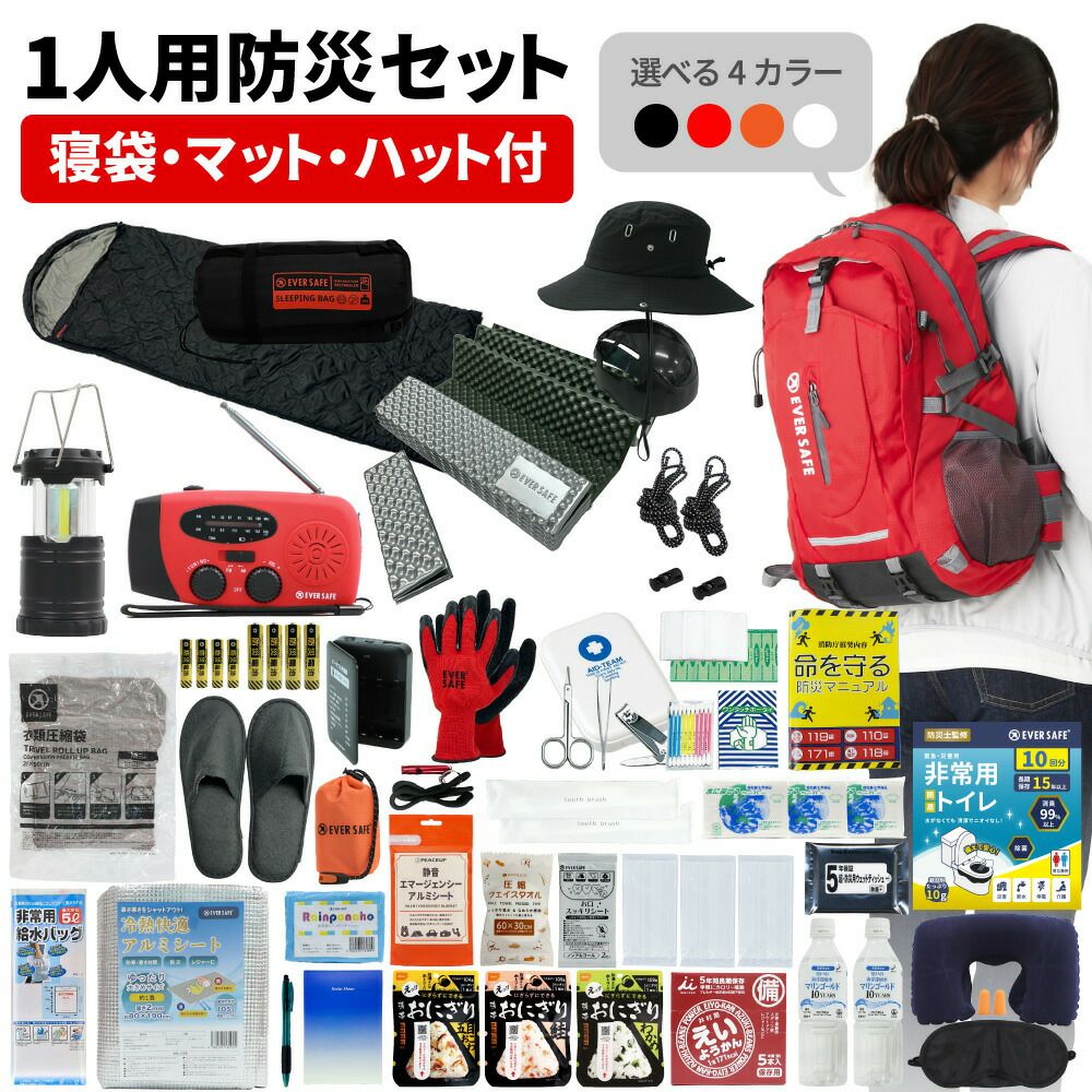 他の画像を見る ハット型ヘルメット・寝袋・マット付きの防災セット 機能性抜群の撥水加工済み防災リュック 防災士監修 防災セット 1人用 EVERSAFEリュック 寝袋 キャンプマット ハット型ヘルメット 防災リュック 撥水加工 非常食 保存水 防災ラジオ 簡易トイレ 救急セット 懐中電灯 衛生用品 警戒レベル4 超軽量 L4ESHTNBMT01 公式サイト販売価格 ¥ 23,655 税込 詳細を見る お気に入りに登録する
