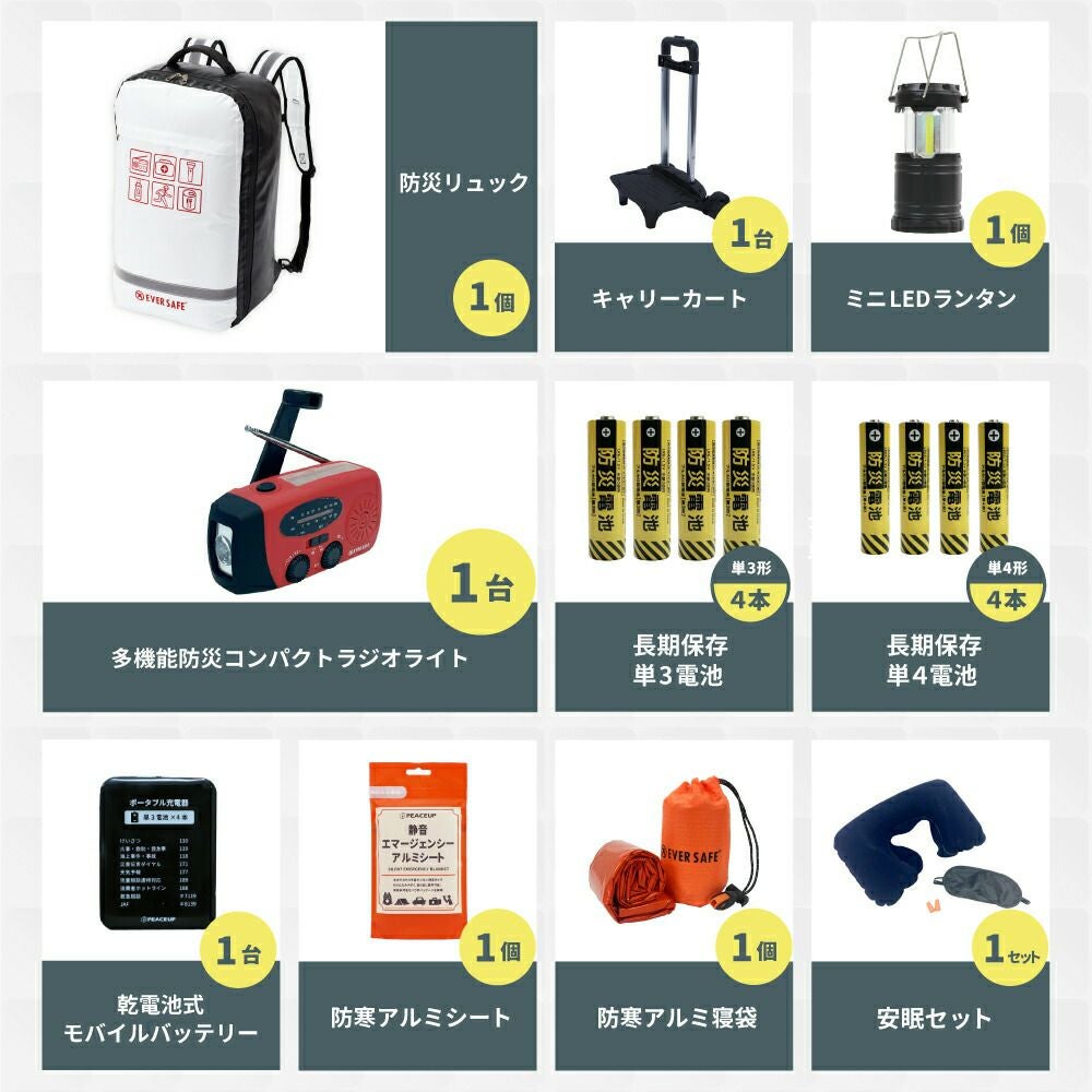 他の画像を見る 災害時の不安を軽減 女性に必要なアイテムが備わったポーチをプラス キャリーカート付きで安心の防災セット 底まで開く防災リュック 女性のための防災セット 1人用 エマージェンシー キャリーカート レディース 女性用 防災士監修 防災ラジオ 非常食 保存水 簡易トイレ 救急セット 衛生用品 警戒レベル4 EVERSAFE L4TPLACR01 公式サイト特別価格 ¥ 22,610 税込 詳細を見る お気に入りに登録する