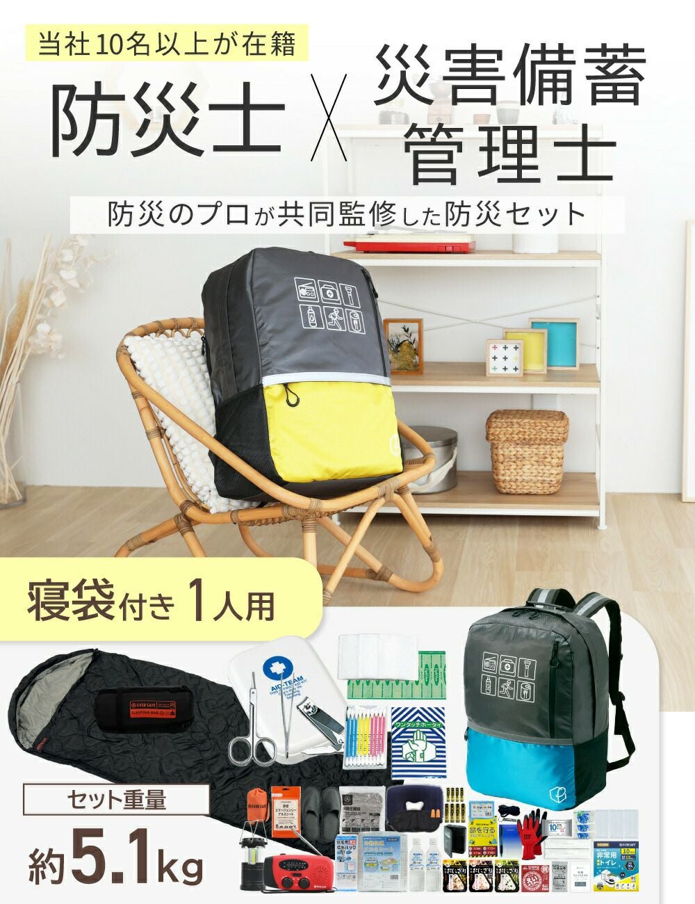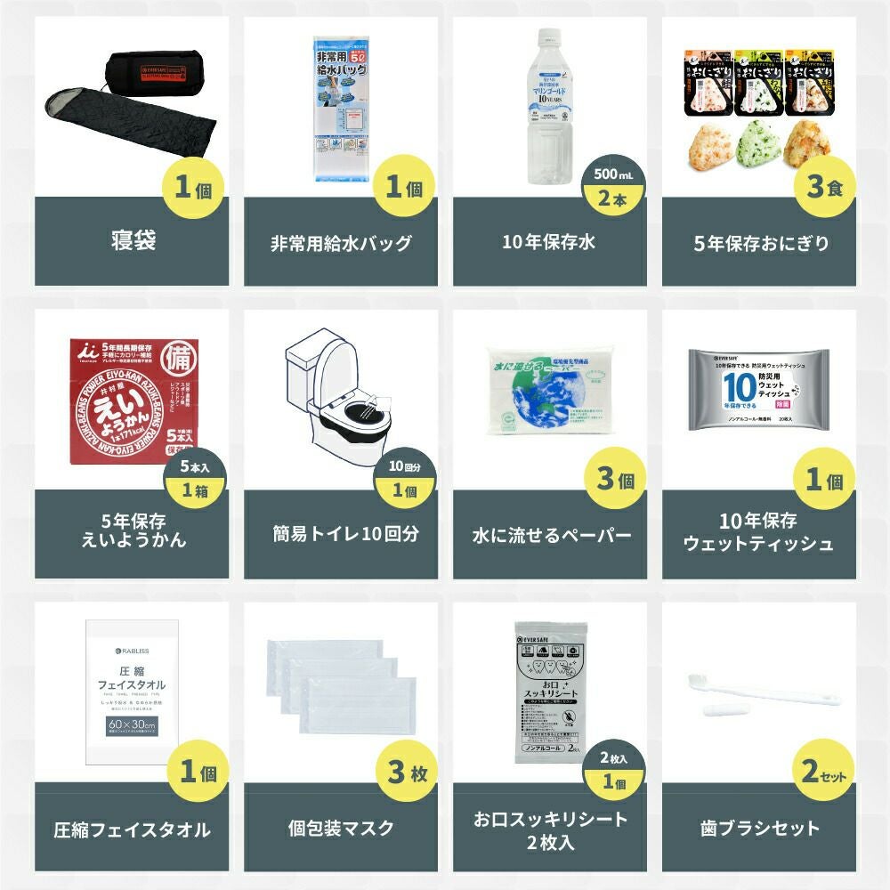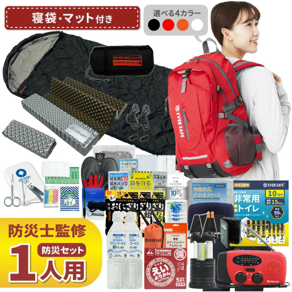 他の画像を見る 軽量なのに大容量 機能性抜群の撥水加工済み防災リュック 選べる4カラー 寝袋・マット付きで充実の防災セット 防災グッズ 防災セット 1人用 寝袋・マット付き EVERSAFEリュック 防災士監修 救急セット 避難 地震 災害 防災食 防災寝具 防災ラジオ 長期保存水 携帯トイレ 懐中電灯 衛生用品 警戒レベル4 L4ESNBMT01 公式サイト特別価格 ¥ 21,659 税込 詳細を見る お気に入りに登録する
