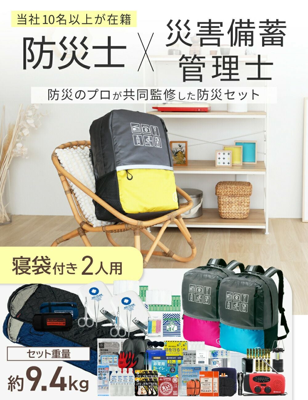 他の画像を見る 大容量でたっぷり収納 軽量で持ち運び楽々の防災リュック 寝袋付きで充実の防災セット 防災士監修 防災セット 2人用 寝袋付き 47L ビッグリュック 非常用持ちだし袋 防災リュック スリーピングバッグ 救急セット ラジオ 懐中電灯 非常食 保存水 携帯トイレ 警戒レベル4 非常時 L4BRNB02 公式サイト特別価格 ¥ 31,159 税込 詳細を見る お気に入りに登録する
