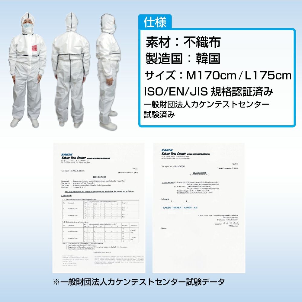 他の画像を見る カケンテストセンター試験クラス6 JIS・ISO・EN 国際基準合格品 防護服 50着/ケース ウイルスバリア性能クラス6・血液バリア性能クラス6 国際基準合格品 Stump sp-2020 公式サイト特別価格 ¥ 24,750 税込 詳細を見る お気に入りに登録する