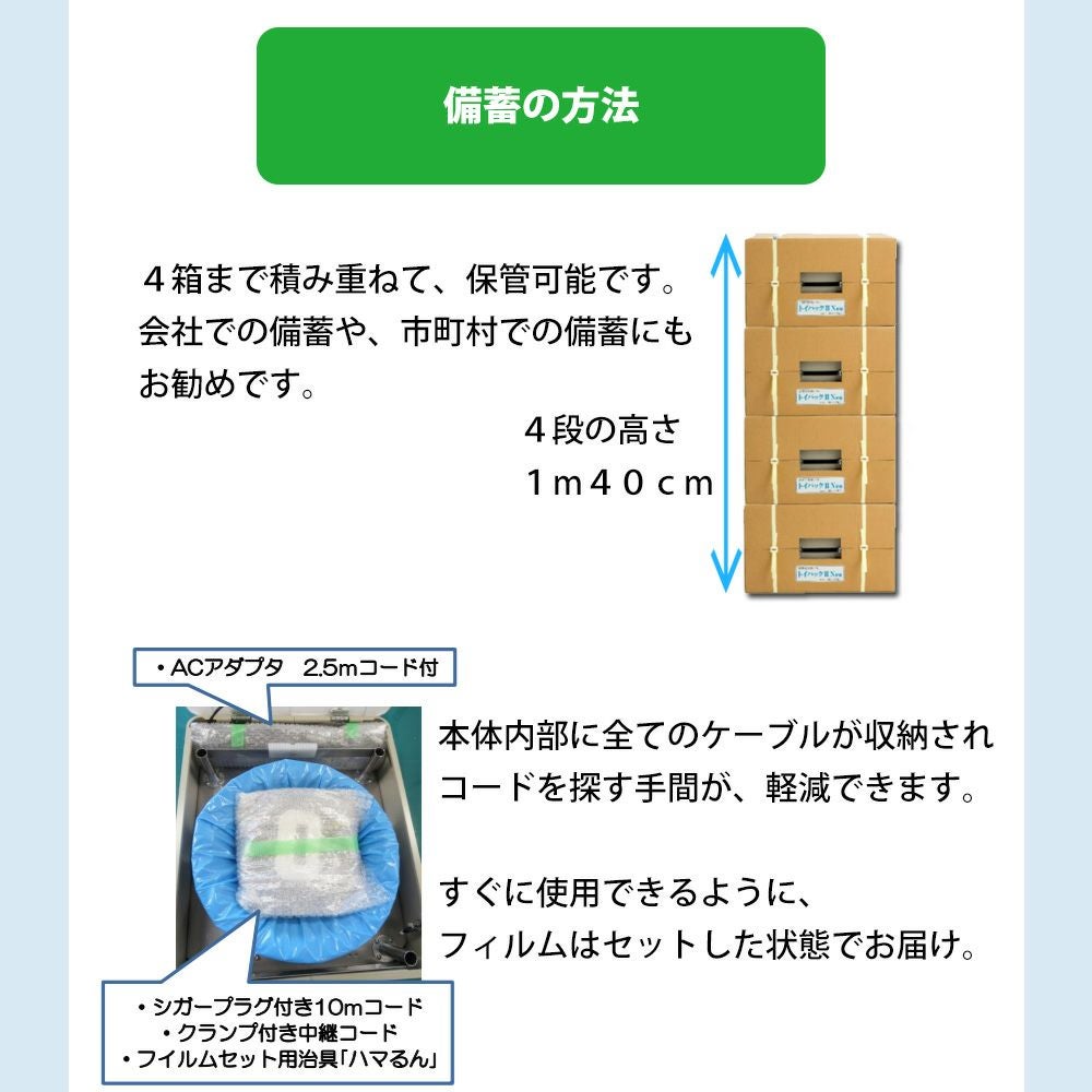 他の画像を見る 1回使用ごとパック処理で臭わない・衛生的・いつもきれい! 備蓄型簡易トイレ トイパックII Neo用オプション 600回分 公式サイト特別価格 ¥ 52,041 税込 詳細を見る お気に入りに登録する