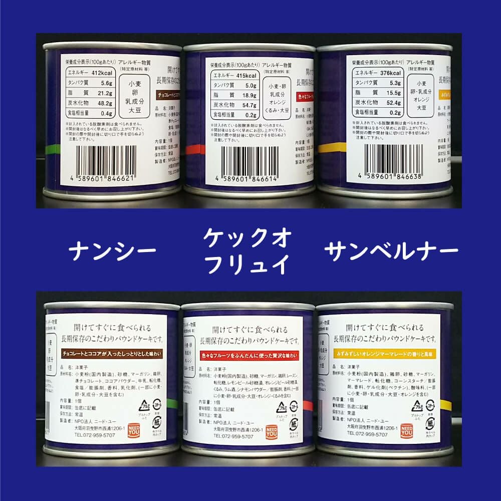他の画像を見る 製造特許取得済!24缶セット。チョコレート/フルーツ/マーマレードケーキの3種類。おやつ、インテリア、アウトドア、ギフトにも。 非常食5年保存食 「ケーキの缶詰24缶セット」 全3種類 公式サイト特別価格 ¥ 16,005 税込 在庫切れ 長期保存なのに本格的なパウンドケーキの缶詰め。 詳細を見る お気に入りに登録する