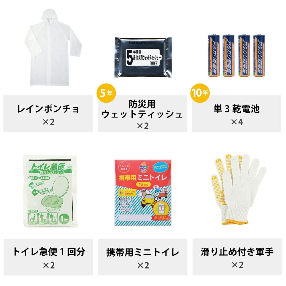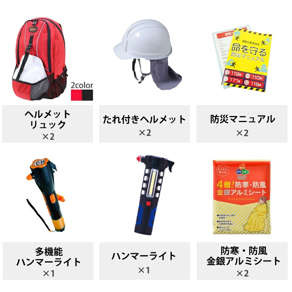 他の画像を見る 迅速・速やかな避難行動!消防庁推奨内容マニュアル付 防災士監修 防災セット 男性 女性用 子供用 ヘルメット付 迅速避難 防災セット 防災グッズ 2人用 動きやすいレスキュー隊仕様リュック 防水LED多機能ライト 防災セット 公式サイト特別価格 ¥ 19,332 税込 在庫切れ 詳細を見る お気に入りに登録する