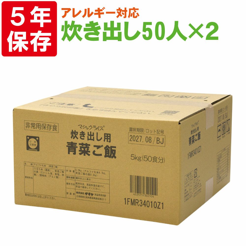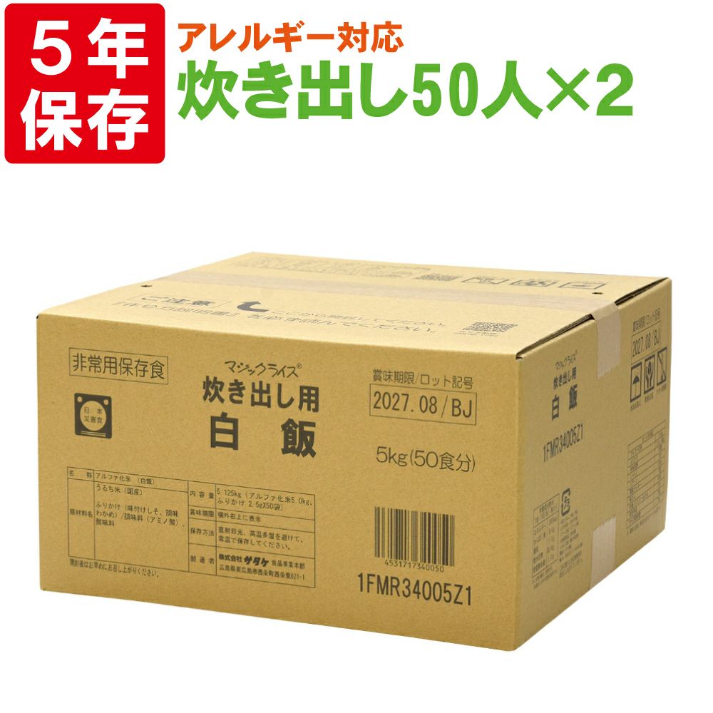 他の画像を見る 非常用保存食の決定版!!あらゆるシーンで大活躍!!5年間長期保存!! サタケマジックライス炊き出し用(わかめご飯)50人分×2セットアレルギー対応食保存期間5年 公式サイト特別価格 ¥ 25,111 税込 在庫切れ 詳細を見る お気に入りに登録する