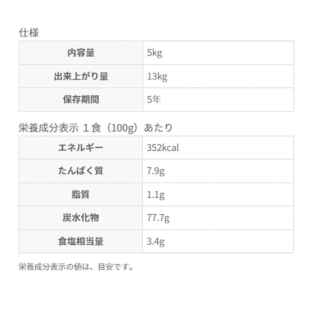 他の画像を見る 非常用保存食の決定版!!あらゆるシーンで大活躍!!5年間長期保存!! サタケマジックライス炊き出し用(白飯)アレルギー対応食50人分×2セット保存期間5年 公式サイト特別価格 ¥ 20,031 税込 在庫切れ 詳細を見る お気に入りに登録する