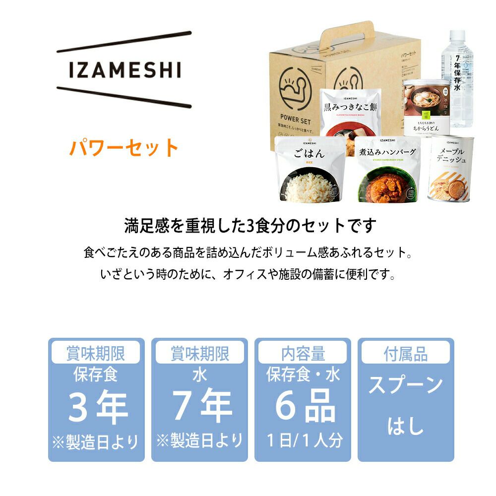他の画像を見る 食べごたえのある商品を詰め込んだボリューム感あふれる非常食セット。3年保存 ギフト・贈り物・プレゼントにも最適!ローリングストックとしても。 非常食セット パワーセット 6個セット IZAMESHI(イザメシ) 防災グッズ 3年保存 防災食 保存食セット 保存料ゼロ アルファ化米 ご飯 IZAMESHI 公式サイト販売価格 ¥ 20,880 税込 在庫切れ 詳細を見る お気に入りに登録する