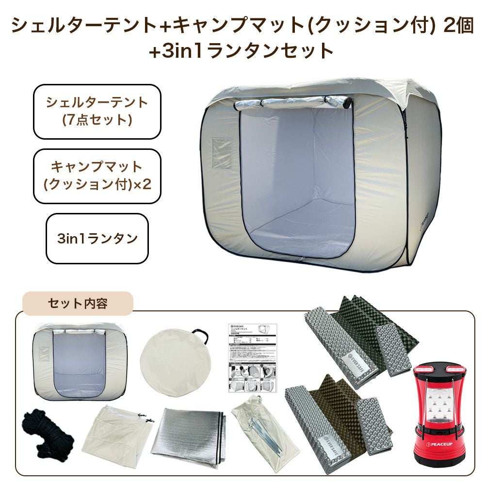 他の画像を見る アウトドアや災害時に! 防災テント キャンプマット ランタンセット シェルターテント 2人分セット キャンプマット クッション付 2個 3in1ランタン PST01 防災テント 3-4人用 災害時 アウトドア キャンプ セット 公式サイト特別価格 ¥ 24,795 税込 在庫切れ 詳細を見る お気に入りに登録する