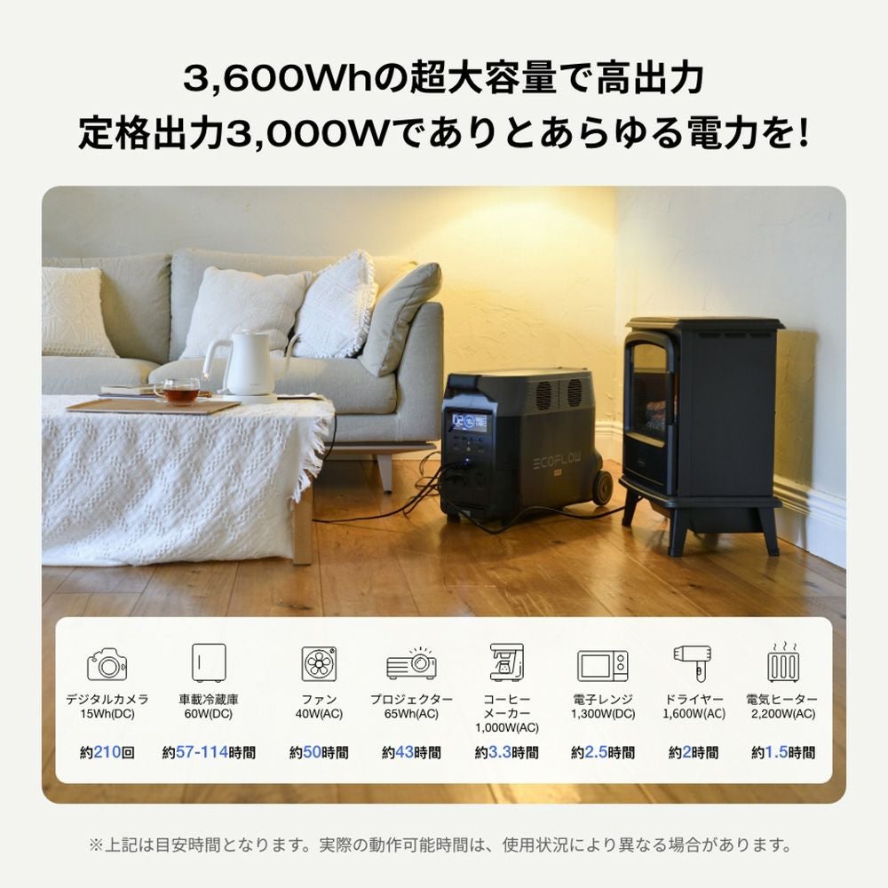 他の画像を見る 24カ月のメーカー保証 容量拡張可 防災製品等推奨品 ポータブル電源 EcoFlow DELTAPro 3600Wh DELTAPro-JP 公式サイト特別価格 ¥ 365,750 税込 在庫切れ 詳細を見る お気に入りに登録する