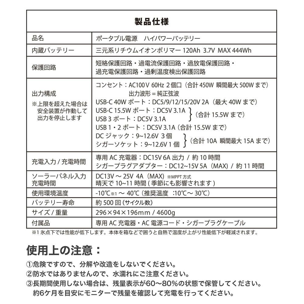 他の画像を見る 1年間保証 超大容量 120,000mAh 444Wh 5つ出力方式 AC (450W 瞬間最大500W) / DC / USB / シガーソケット出力 災害用備蓄品 防災セット ポータブル電源 大容量 120 公式サイト販売価格 ¥ 56,809 税込 在庫切れ 詳細を見る お気に入りに登録する