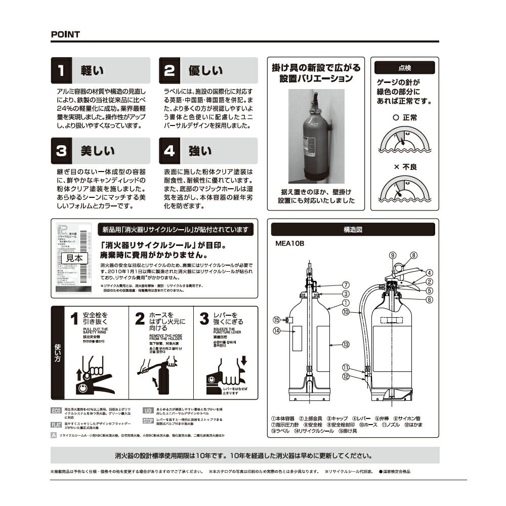 他の画像を見る 幅広い火災に適応する業務用スタンダード。軽く、操作性の高いアルミ製。4ヶ国語表記を採用。 アルテシモMEA10B (火災対策 避難 防炎 消火 火事 消防用品 操法 消防団 防災用品) 公式サイト販売価格 ¥ 19,855 税込 在庫切れ 詳細を見る お気に入りに登録する