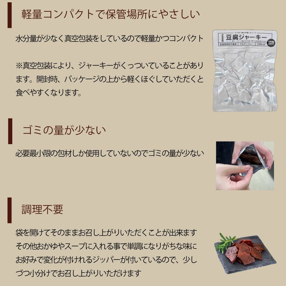 他の画像を見る 常温保存非常食。国産大豆使用の豆腐でできたジャーキーです。 災害初期に不足しがちなたんぱく質の補給が手軽にできます。 非常食 防災用 豆腐ジャーキー 40g 50袋/ケース 7年保存 合成保存料不使用 グルテンフリー 保存食 高たんぱく 栄養補給 真空包装 コンパクト タナカショク 公式サイト特別価格 ¥ 18,723 税込 在庫切れ 詳細を見る お気に入りに登録する