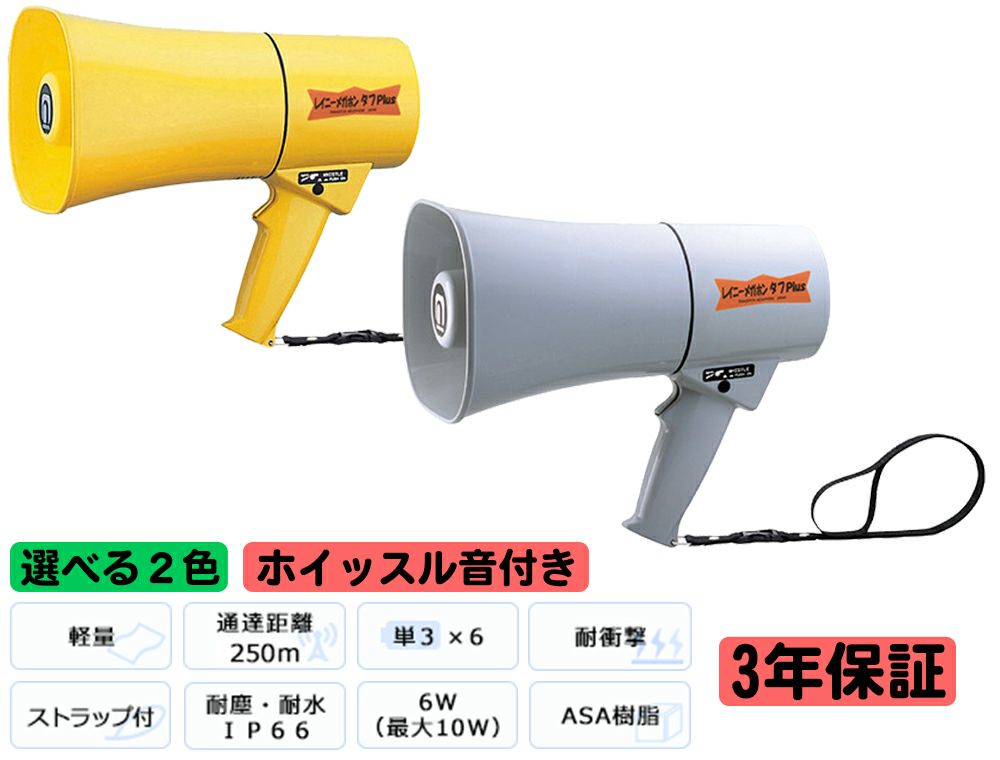 他の画像を見る ホイッスル音付。イエローorグレー。防水性能が大幅にアップした耐衝撃性が高いメガホンです。 拡声器 ノボル電機 レイニーメガホン タフ Plus TS-634 / TS-634N 6W ホイッスル音付 (旧 TS-624/N) 公式サイト販売価格 ¥ 21,318 税込 詳細を見る お気に入りに登録する