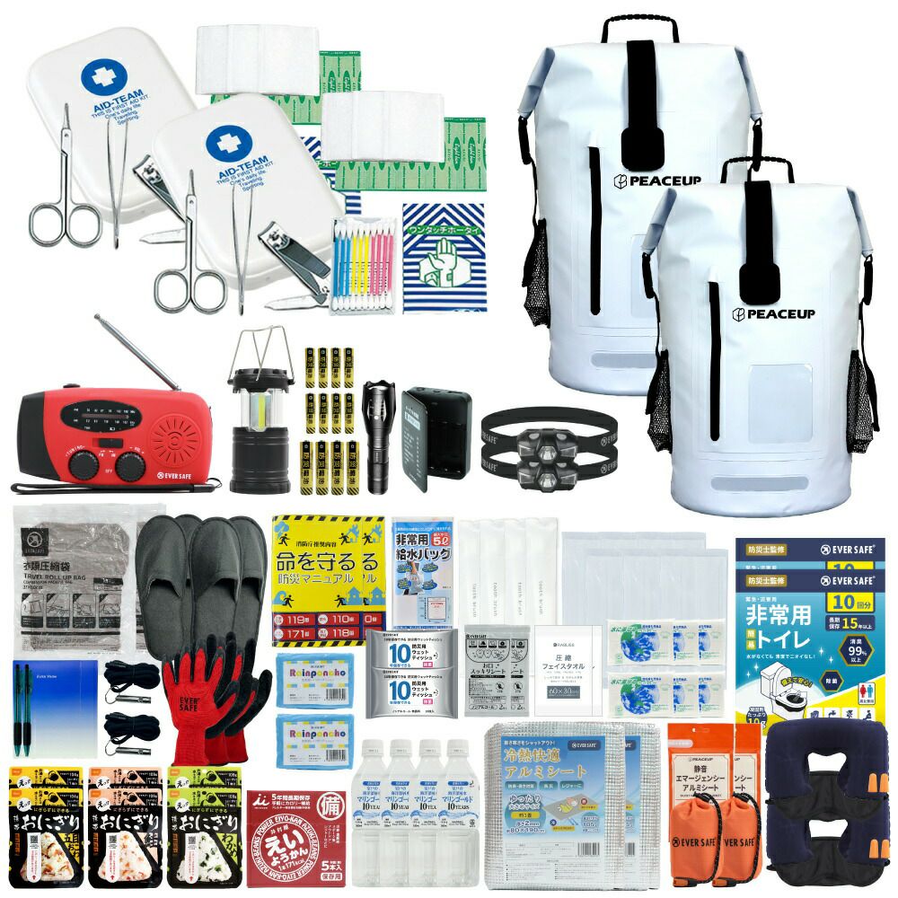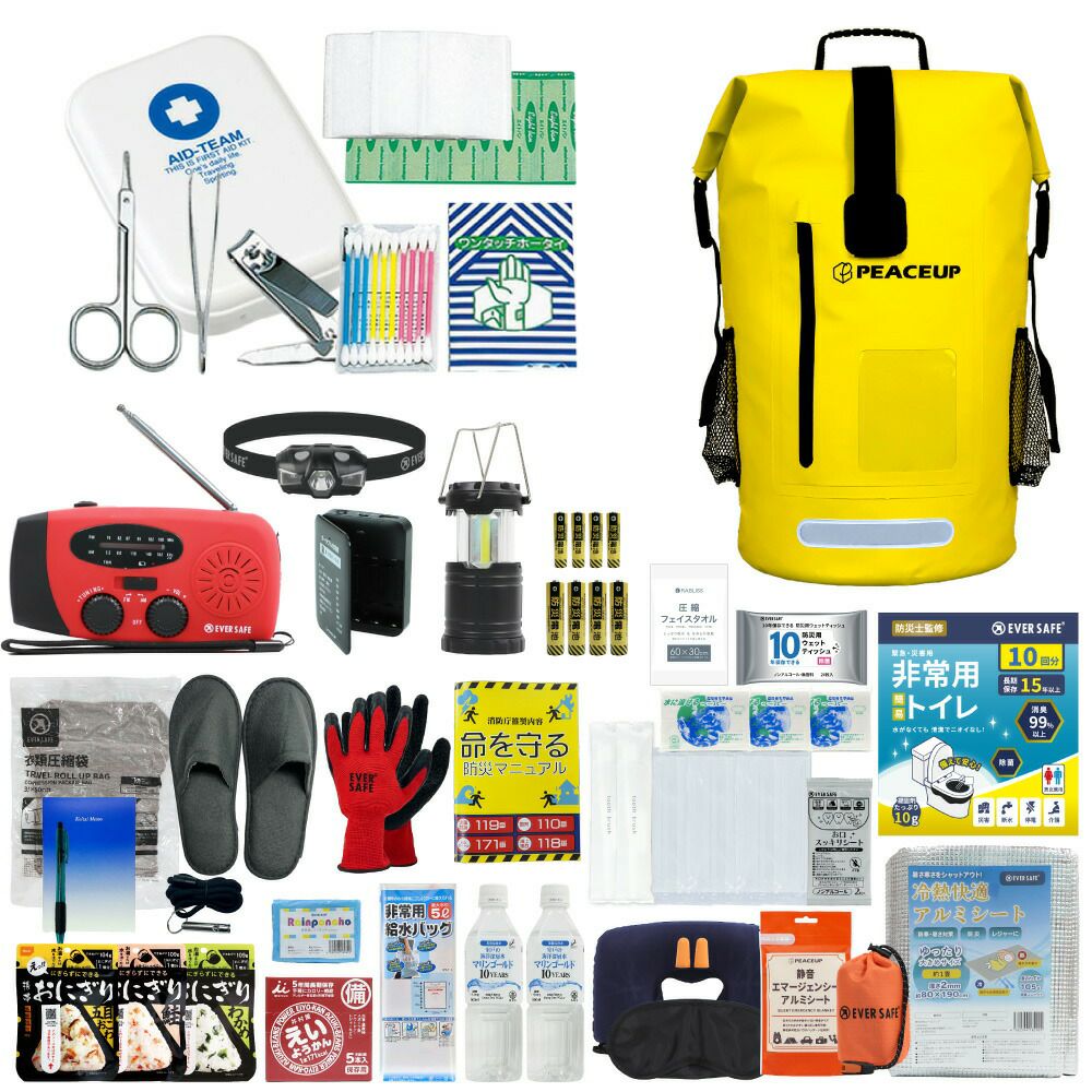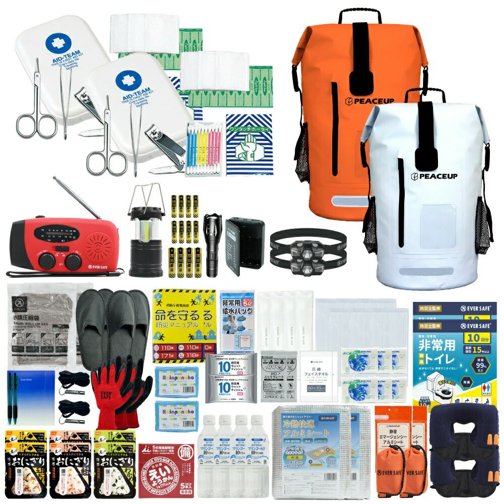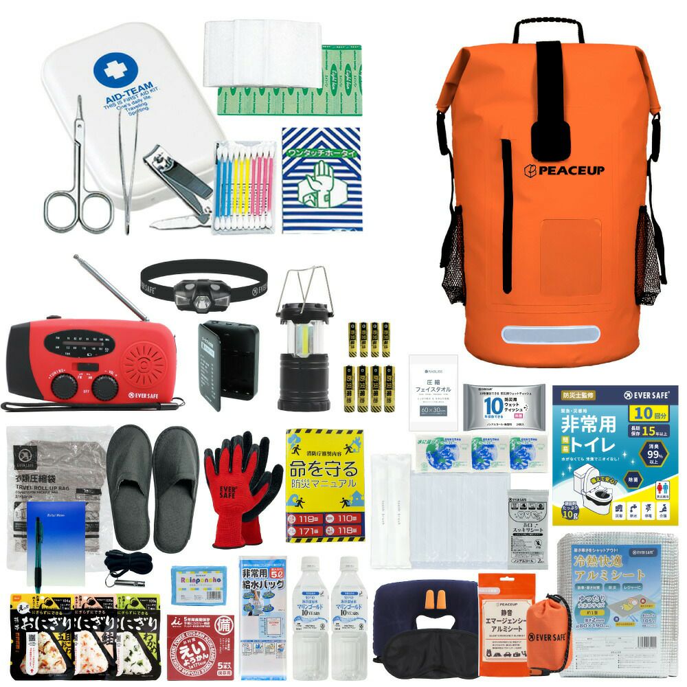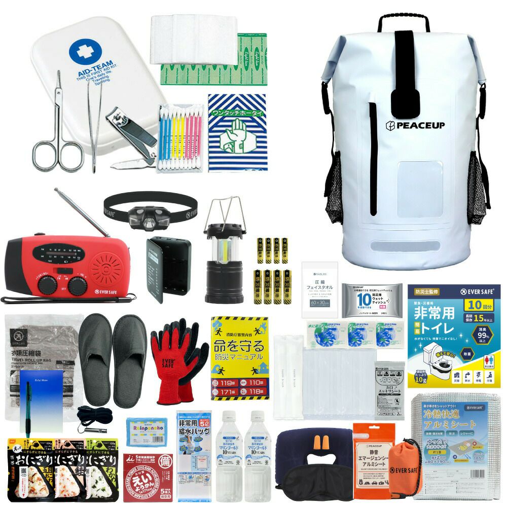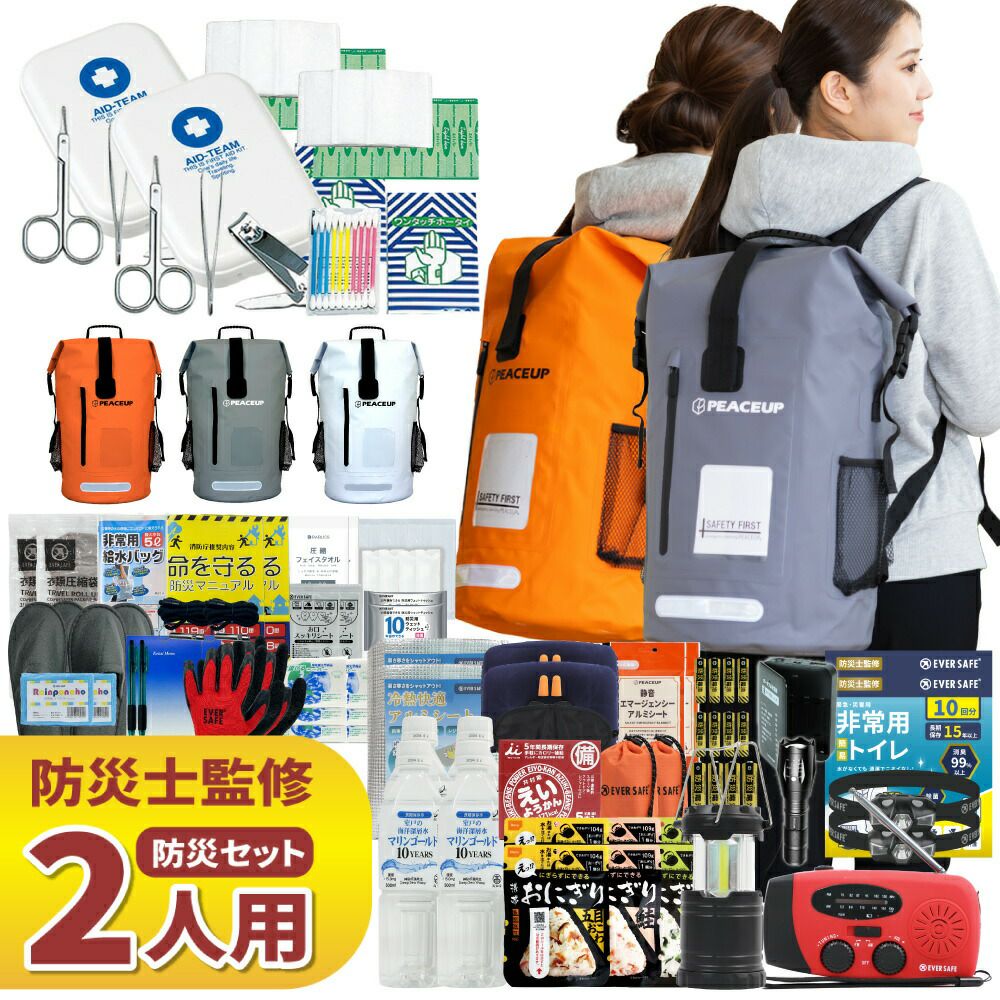 他の画像を見る 水に強い防水リュック 水害に備える防災セット 選べる3カラー 防災士監修 防災セット 2人用 ドライバッグ 防水リュック ヘッドライト 水害対策 防災リュック 非常食 保存水 防災ラジオ 簡易トイレ 懐中電灯 衛生用品 警戒レベル4 水難 避難 アウトドア L4DR02 公式サイト特別価格 ¥ 28,309 税込 詳細を見る お気に入りに登録する