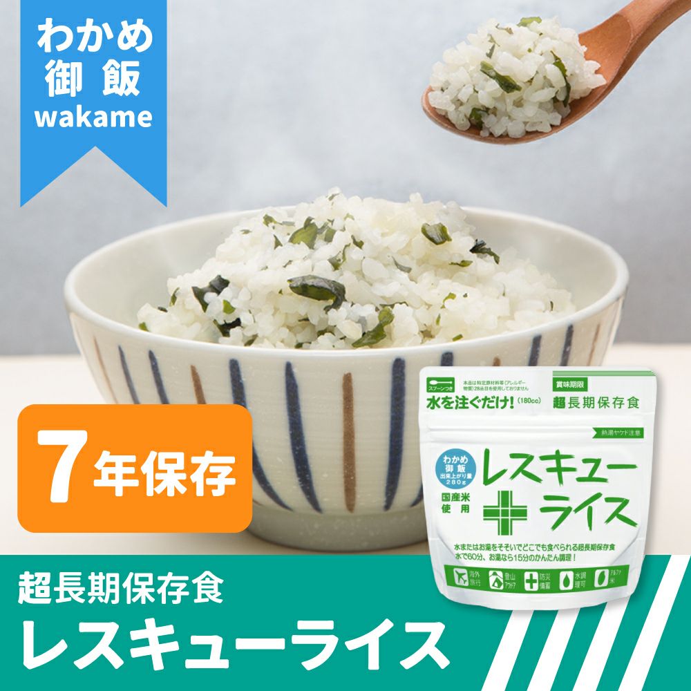 他の画像を見る 長期7年保存なので5年保存より備蓄コスト・入れ替え効率が良く手間も軽減! 非常食7年保存レスキューライス「わかめご飯 100食セット/箱」 公式サイト特別価格 ¥ 30,780 税込 詳細を見る お気に入りに登録する