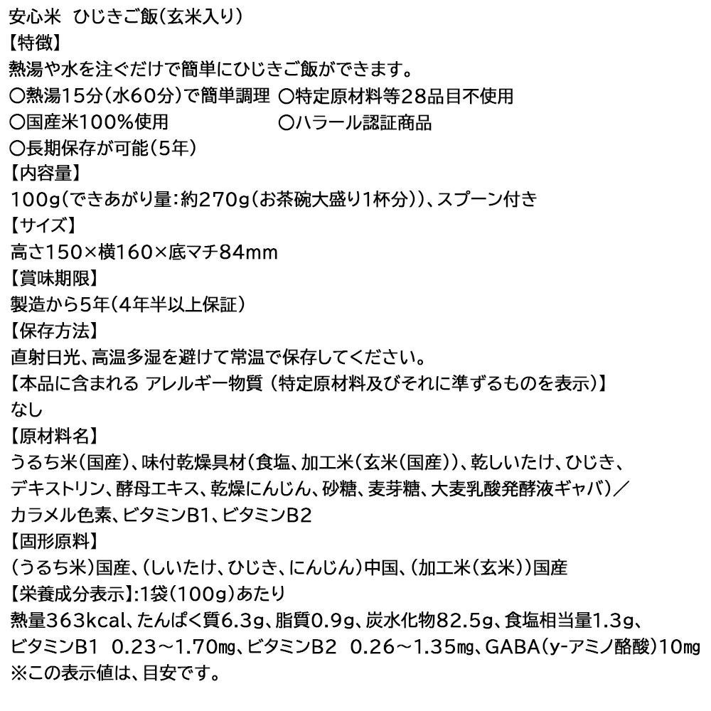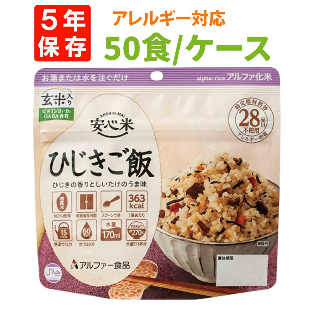 他の画像を見る 特定原材料等(アレルギー物質)28品目不使用 防災食 非常食 アルファ米 安心米 ひじきご飯(玄米入り) 50食 ケース 5年保存 公式サイト特別価格 ¥ 16,929 税込 詳細を見る お気に入りに登録する