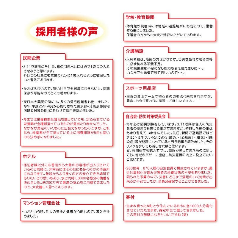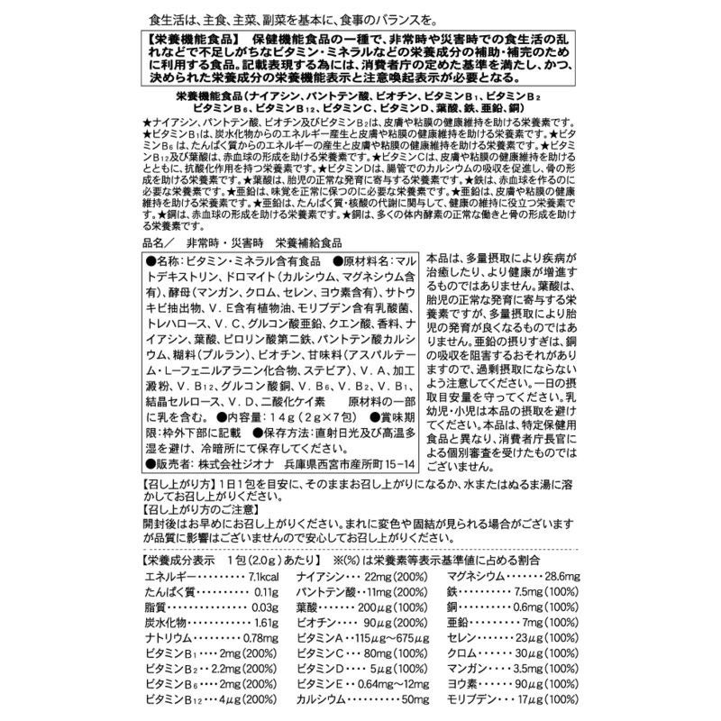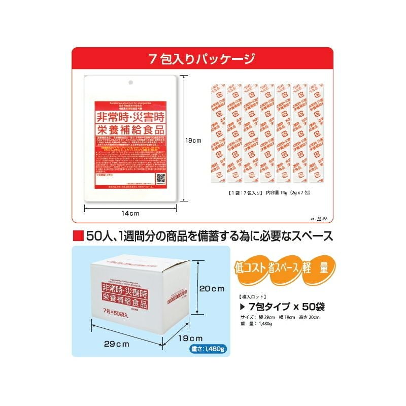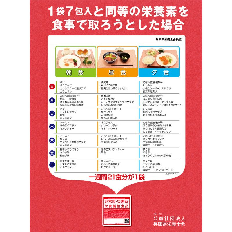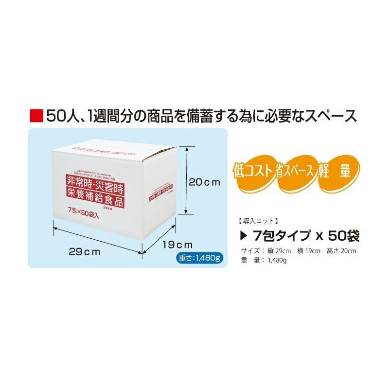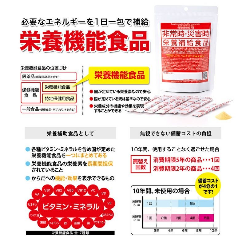 他の画像を見る 栄養災害を1日1包で解決!少しのスペースで効率良く備蓄が出来る! 5年保存非常時・災害時栄養補給食品1袋(7包入)×50袋セット 公式サイト特別価格 ¥ 55,301 税込 詳細を見る お気に入りに登録する