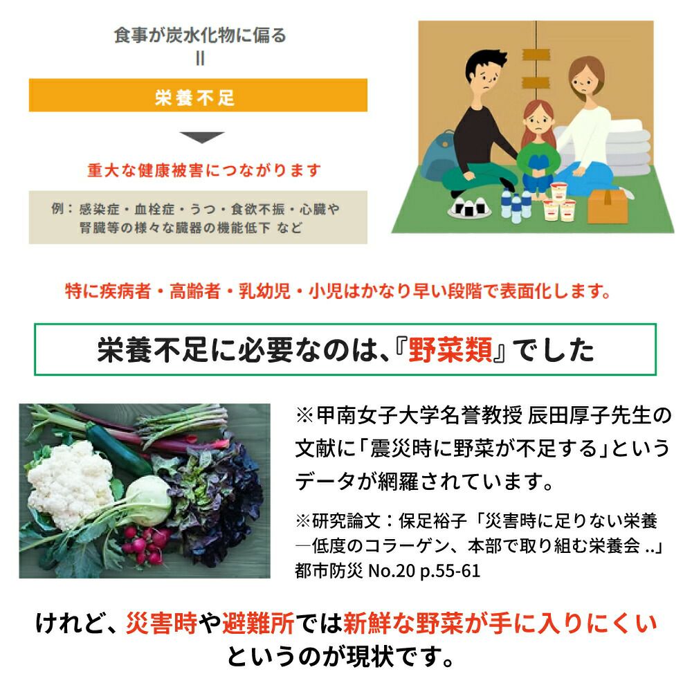 他の画像を見る 水またはお湯で溶かすだけの簡単調理で不足しがちなビタミン・ミネラルを効果的に補給。28品目のアレルギー原材料不使用で小さなお子様も安心です。 非常食 備蓄用栄養補給ライフスープ 5年保存 420食 アレルギー対応 長期保存 保存食 防災食 防災 備蓄 野菜コンソメ味 粉末 ベジタルアドバンス 公式サイト販売価格 ¥ 81,874 税込 詳細を見る お気に入りに登録する
