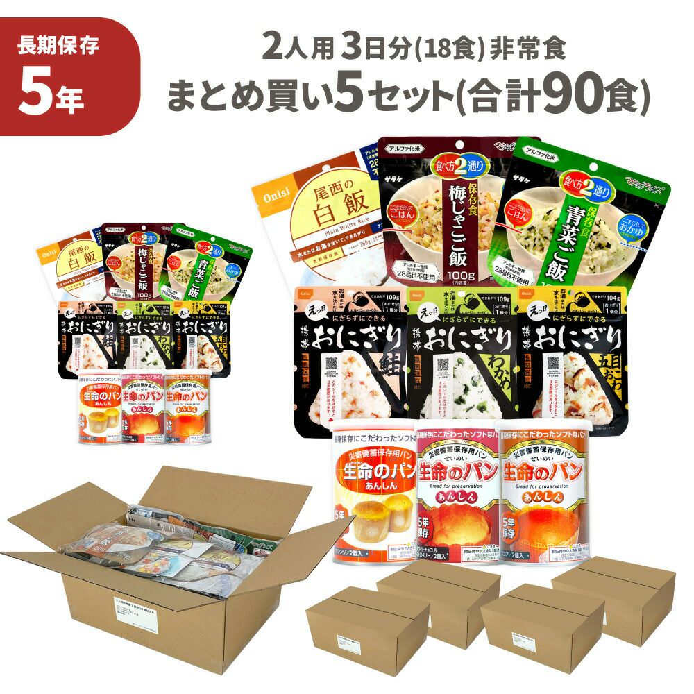 他の画像を見る 2人用非常食 3日分 5セットをまとめ買い!団体様用備蓄にもオススメ 非常食セット 5セット ( 90食 ) 2人用 3日分 18食 5年保存 まとめ買い 保存食 防災食 非常用食品 ご飯 お米 アルファ米 パン おにぎり 5年 3日間分 PEACEUP 公式サイト特別価格 ¥ 27,702 税込 詳細を見る お気に入りに登録する