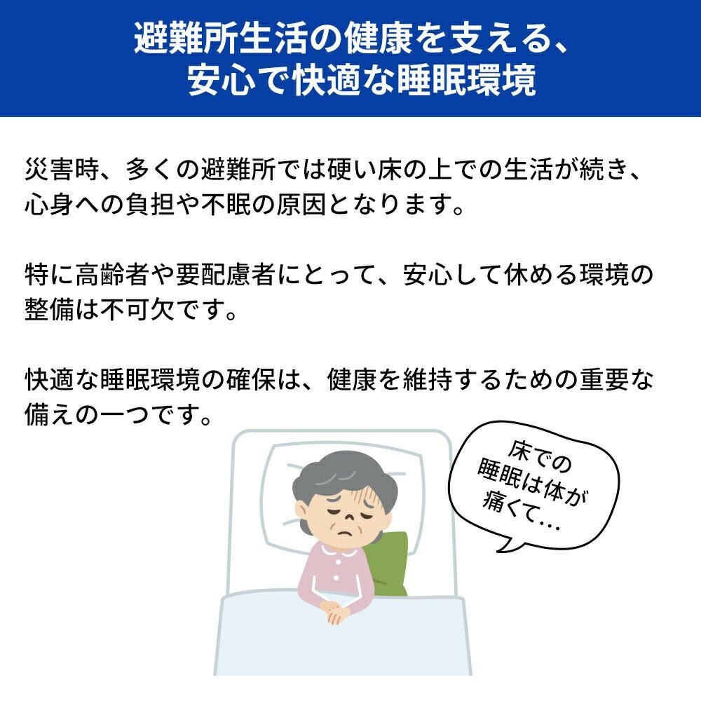 他の画像を見る 避難所の負担軽減を考えた設計 軽量約7.5kg・耐荷重300kgの多機能折りたたみベッド。 防災グッズ 折り畳み式簡易ベッド 20個 簡易ベッド 折りたたみベッド コット 軽量 持ち運び 折り畳み コンパクト収納 非常用 KO394 RABLISS 公式サイト特別価格 ¥ 309,320 税込 詳細を見る お気に入りに登録する