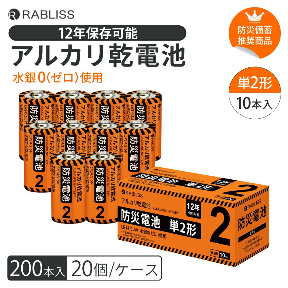 他の画像を見る 防災備蓄推奨商品 12年保存可能 水銀0(ゼロ) 停電 緊急時の強い味方 アルカリ乾電池 防災電池 単2形 200本 (20箱/ケース) 単2電池 電池 12年保存 台風対策 地震対策 充電 懐中電灯 ラジオ ライト ランタン 防災グッズ KO408 RABLISS 公式サイト特別価格 ¥ 32,604 税込 詳細を見る お気に入りに登録する