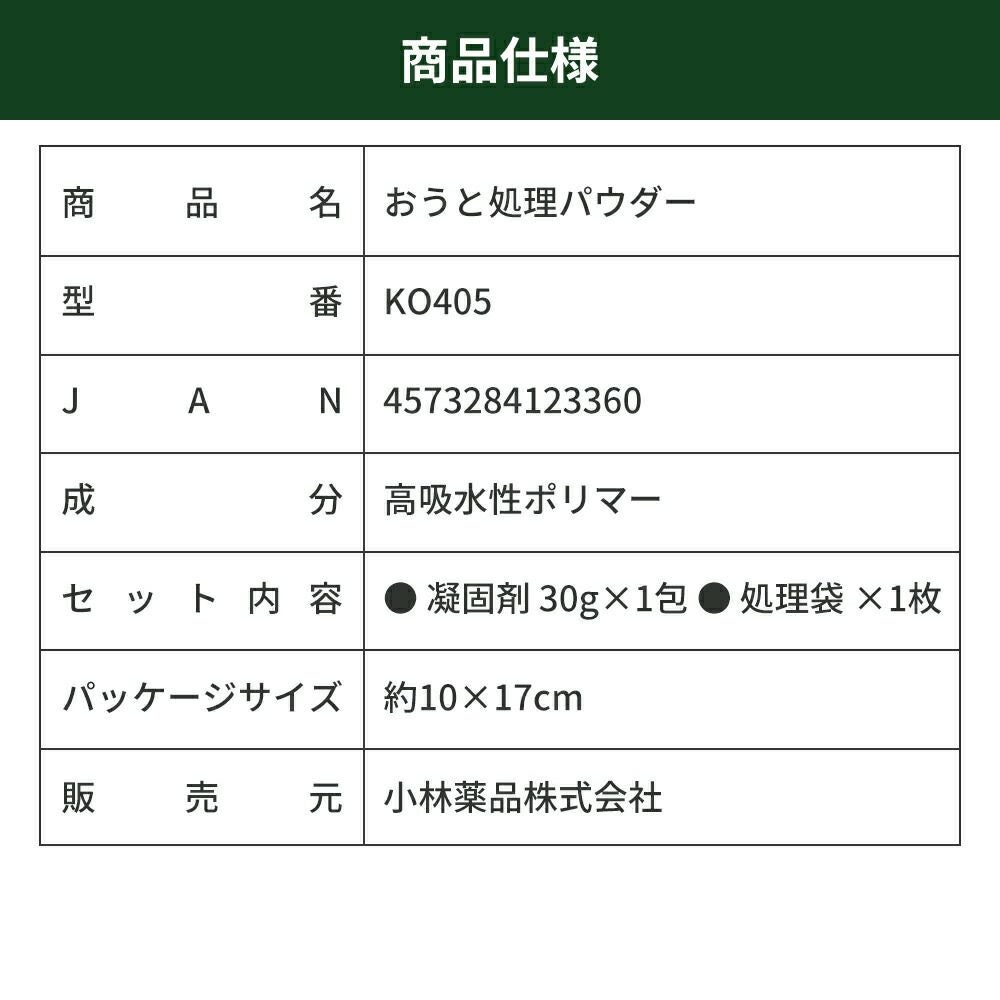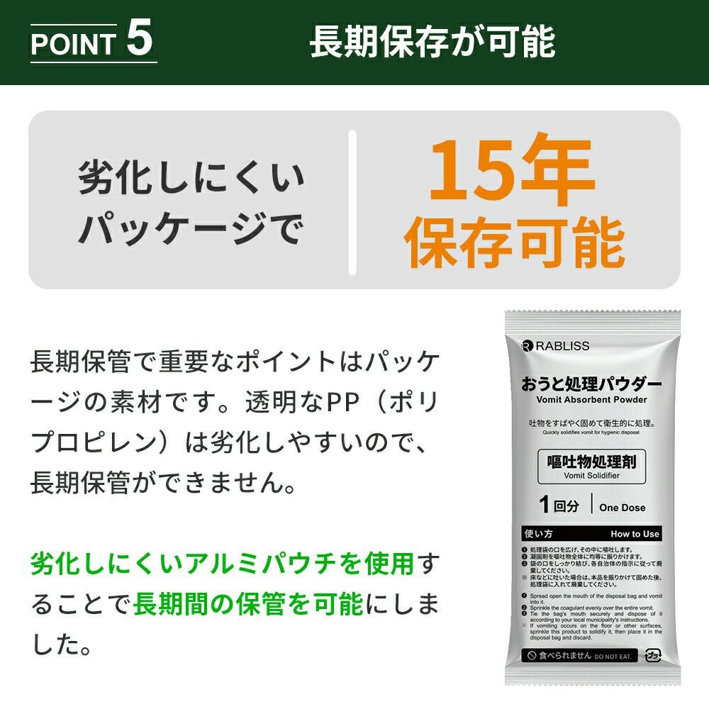 他の画像を見る 振りかけるだけで嘔吐物をスピード凝固!衛生的にサッと簡単処理 衛生用品 おうと処理パウダー 1回分 100個 嘔吐処理 凝固剤 おう吐 嘔吐 吐瀉 ウイルス 感染症対策 食中毒 KO405 RABLISS 公式サイト特別価格 ¥ 16,093 税込 詳細を見る お気に入りに登録する