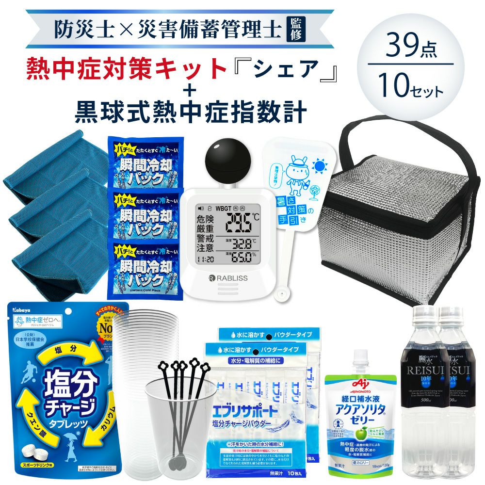 他の画像を見る 防災士監修 みんなで使える シェア用 熱中症対策セット 暑さ対策 熱中症予防キット 夏場の現場作業 工場 スポーツ アウトドア 塩分補給 車載用にも 熱中症対策用品 熱中症対策キット シェア 黒球式熱中症指数計付き 39点 シルバー 10セット 複数人向け 塩分補給パウダー 熱中症対策グッズ 暑さ対策 WBGT 工事現場 野外作業 アウトドア ATD010K PEACEUP 公式サイト販売価格 ¥ 74,955 税込 詳細を見る お気に入りに登録する
