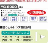 新開発のYG-6000のフレームは顔当たり部分に柔らかいエラストマー素材を用い、レンズ側のPP素材と最新の技術で融合しています。