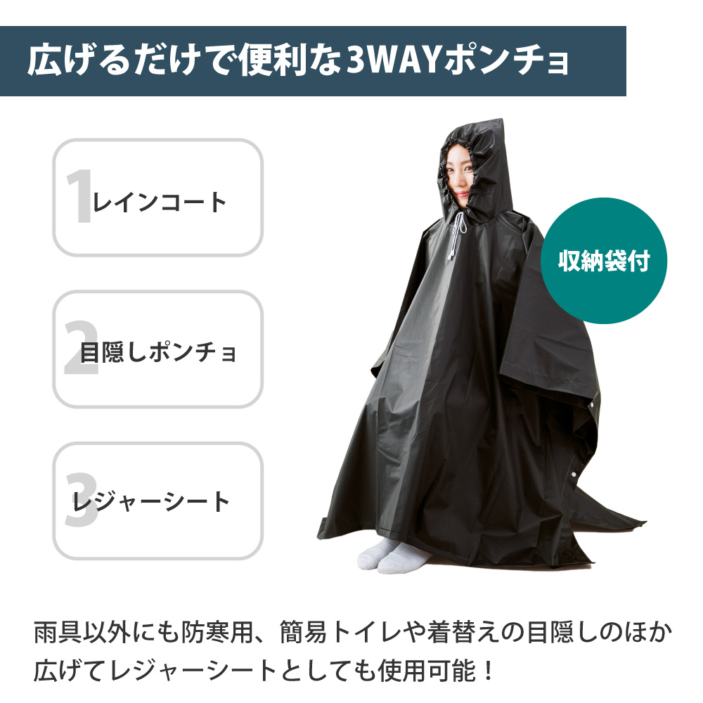 3. 防災グッズ 3Way 目隠しトイレポンチョ 【メール便1個まで】 収納袋付 広げてレジャーシート レインコート・寒さ対策 EVAポンチョ 非常用 簡易トイレ・着替えの目かくしに 携帯トイレ 災害用 防災用品 緊急用 避難時 お着替えポンチョ 防水 防災セット 避難所