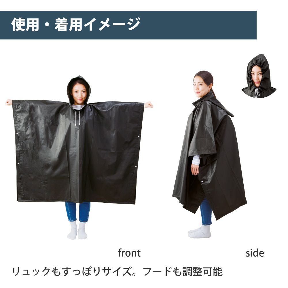 目隠し、雨除け、防寒、簡易なレジャーシートにもなるポンチョ