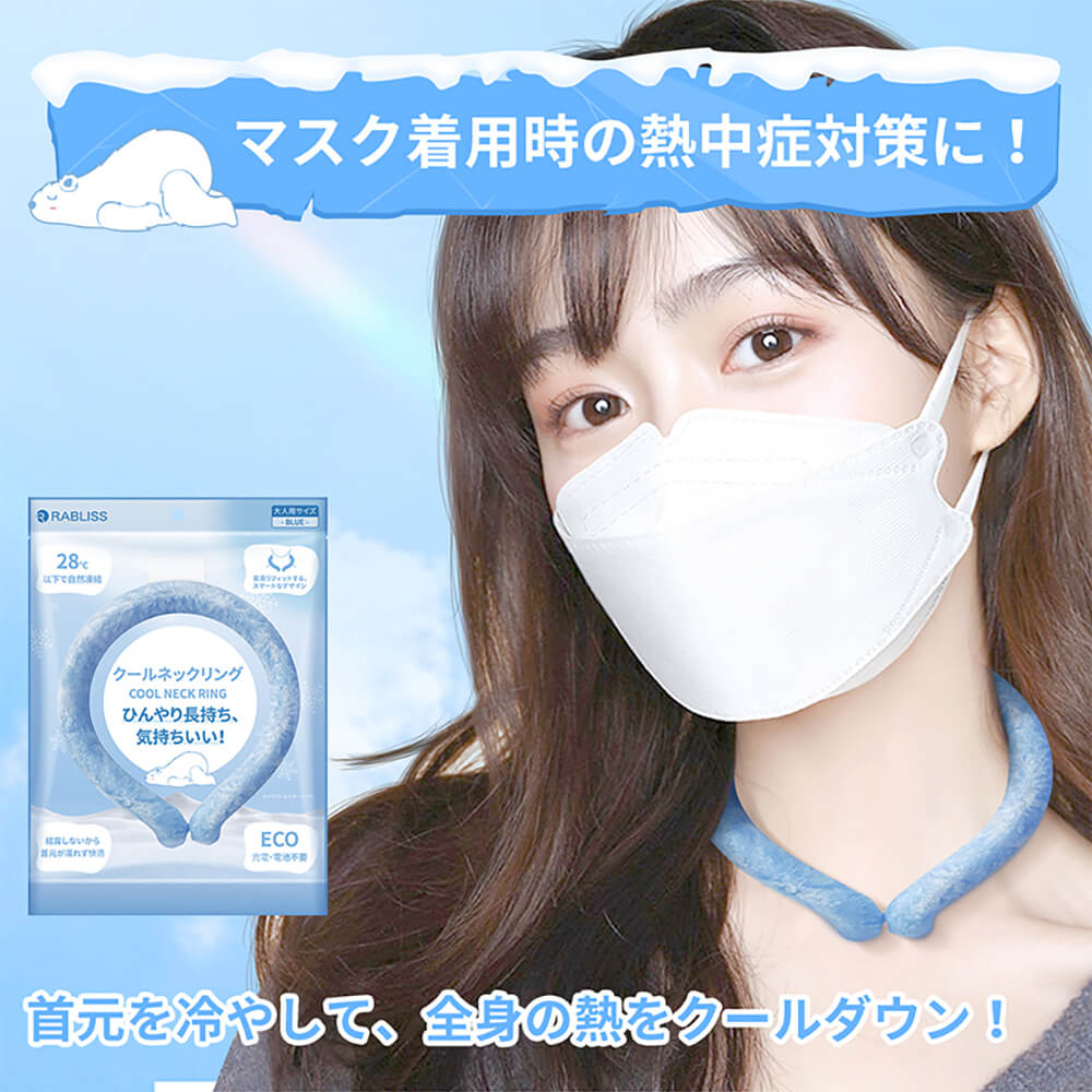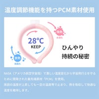 ・暑い真夏の季節でもリングはひんやりキープ!28度以下の空間で凍る不思議な氷「PCM素材」で作られた首元用のネッククーラー。 心地良い温度で首の頸動脈を効率的に冷やすので熱中症対策にもオススメ!氷のように冷えすぎないので低温障害の心配もなくお肌にもやさしい♪。