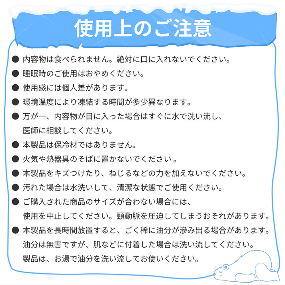 ・本製品は保冷材ではありません。