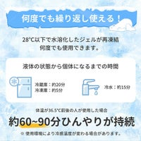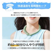 ■商品特徴< ・本物の氷と違い、スマートエコアイスは冷えすぎを防ぎ、約60~90分にわたり心地良い温度をキープ!低温火傷の心配もなくお子様でも安全にご使用いただけます。 氷は0℃になると溶け始めますが、スマートエコアイスは融点が高く28℃で溶け始めるため、より長時間ひんやりとした冷感を得れます。 ・暑い真夏の季節でもリングはひんやりキープ!28度以下の空間で凍る不思議な氷「PCM素材」で作られた首元用のネッククーラー。 心地良い温度で首の頸動脈を効率的に冷やすので熱中症対策にもオススメ!氷のように冷えすぎないので低温障害の心配もなくお肌にもやさしい♪ ・一度溶けてもエアコンの効いた涼しい空間などに置いておくだけでも再び凍って繰り返し使える!冷凍庫に入れたり水道水に浸けることでさらにスピーディに凍るので急なお出かけにも対応します。 ・首元にフィットして落ちにくいデザイン。スポーツでアクティブに動く方や屋外で作業をする方、通勤・通学時、釣りをする方、家事をする方、ホットフラッシュが気になる方、クーラーのない空間での活動、お風呂上がりや気分転換など様々なシーンでお使いいただけます。 ・首には大動脈があり、この部分を冷やすと全身に流れる血液を冷やすことができる為、全身を効果的にクールダウンし熱中症予防の効果が見込めます。 ・溶けた後は、冷蔵庫で20分、冷凍庫では5分、流水で約30分間、28℃以下の環境下であれば自然にも凝固し、繰り返し半永久的にご使用できます。