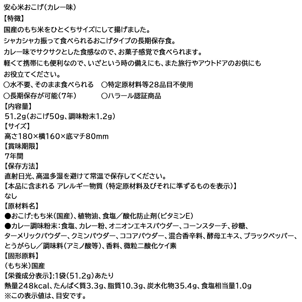 非常食に最適なおこげスナックです。