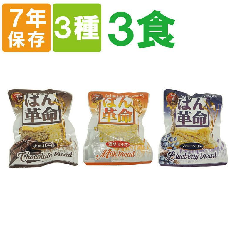 7年長期保存と美味しさと価格をとことん追求したパン革命 7年保存非常食ぱん革命「3個セット(3種類)」