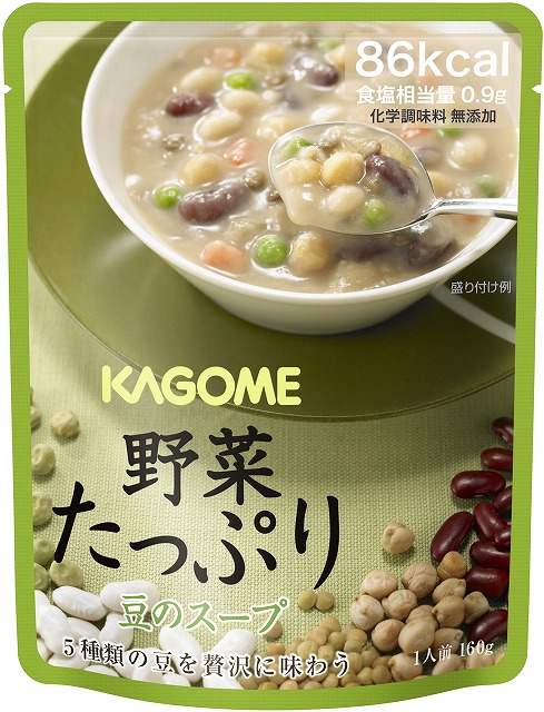 原材料名: 野菜(たまねぎ、ピーマン、にんじん、じゃがいも、セロリ、グリーンピース)、白いんげん豆ピューレー(国内製造)、白いんげん豆、ひよこ豆、赤いんげん豆、レンズ豆、牛乳、チキンガラスープ、スペルト小麦、チキンエキス、チキンブイヨン、大豆油、食塩、ガーリックピューレー、パセリ濃縮液、酵母エキス、香辛料、(一部に小麦・乳成分・大豆・鶏肉・豚肉・ゼラチンを含む)