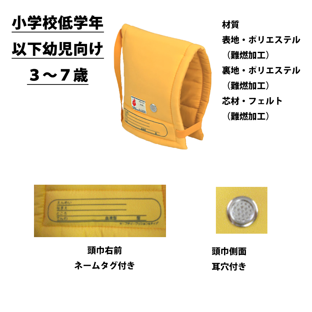 3. 防災頭巾 カバー付きセット 幼児向け(3〜7才)Sタイプ 小学生低学年以下用(約30×25cm)