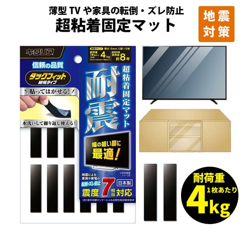 震度7相当にも耐える 耐荷重4kg 耐震 衝撃吸収 貼るだけ簡単